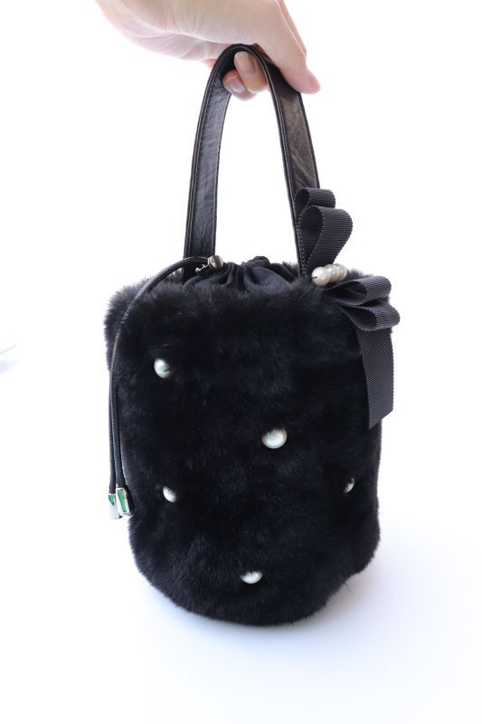NAPATA MELLOE(ナパータメロエ)エコファーを使用したバケツバッグです。持ち手はラム皮。コロンとしたフォルムがとてもキュートです。