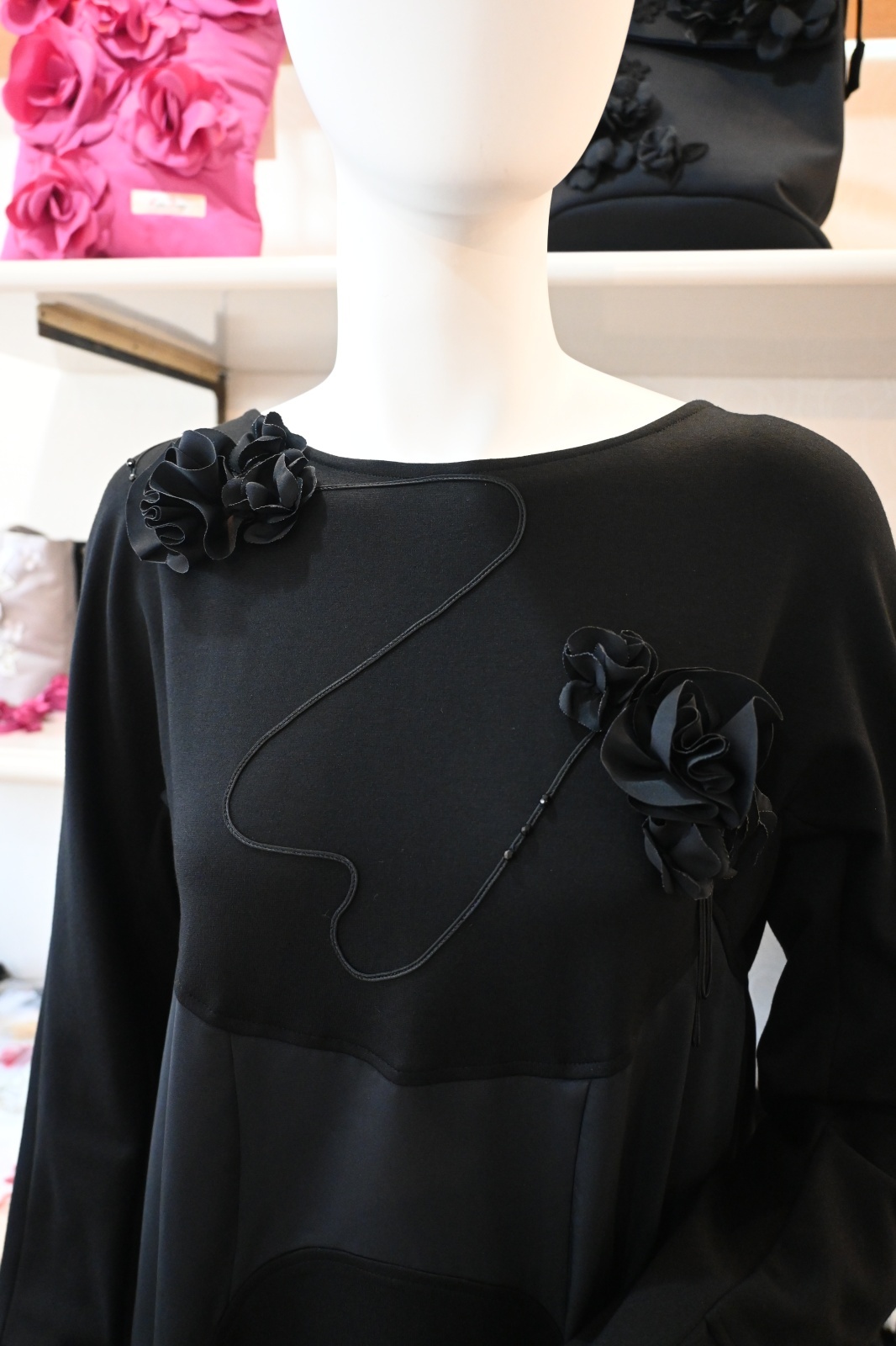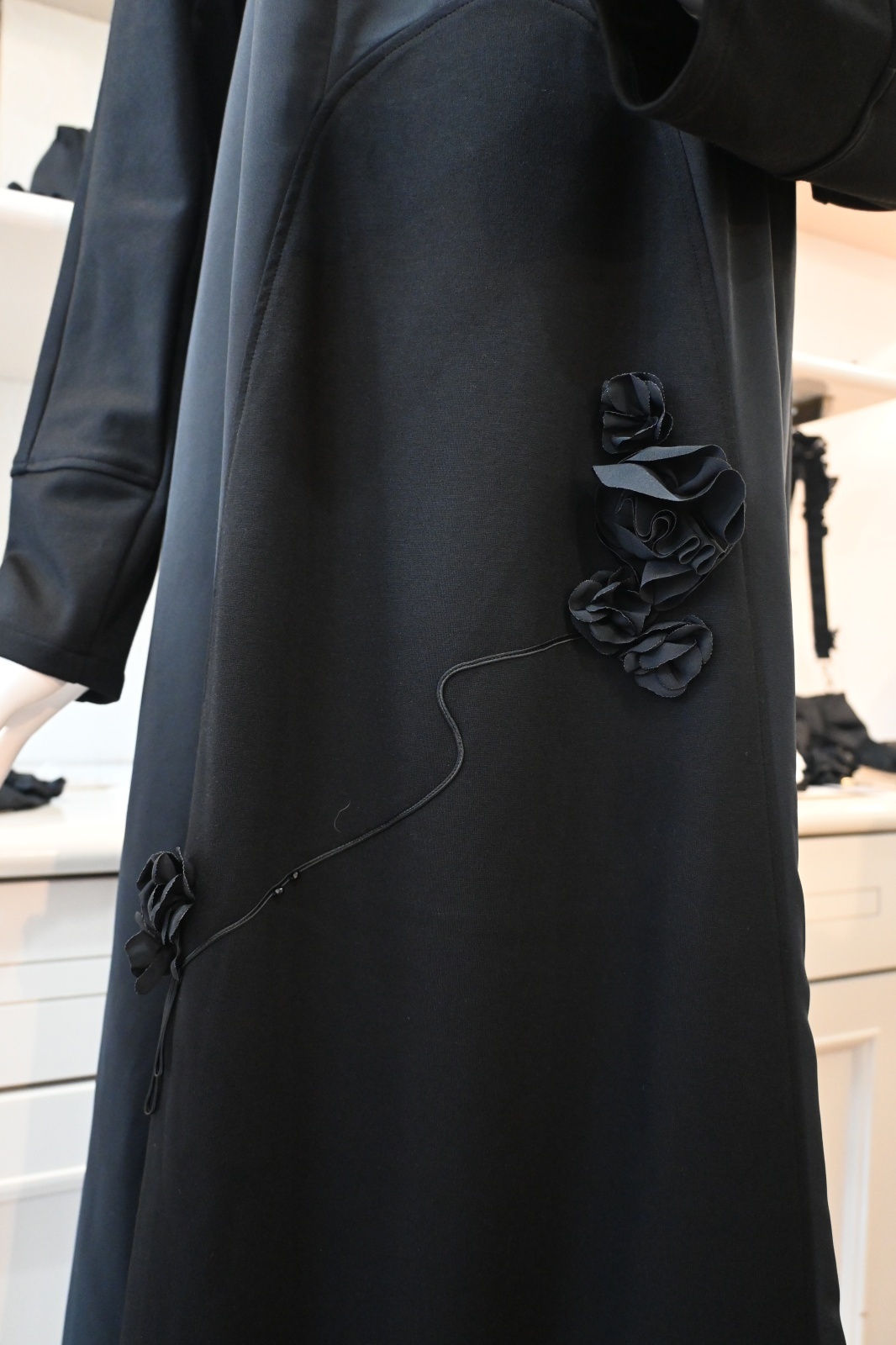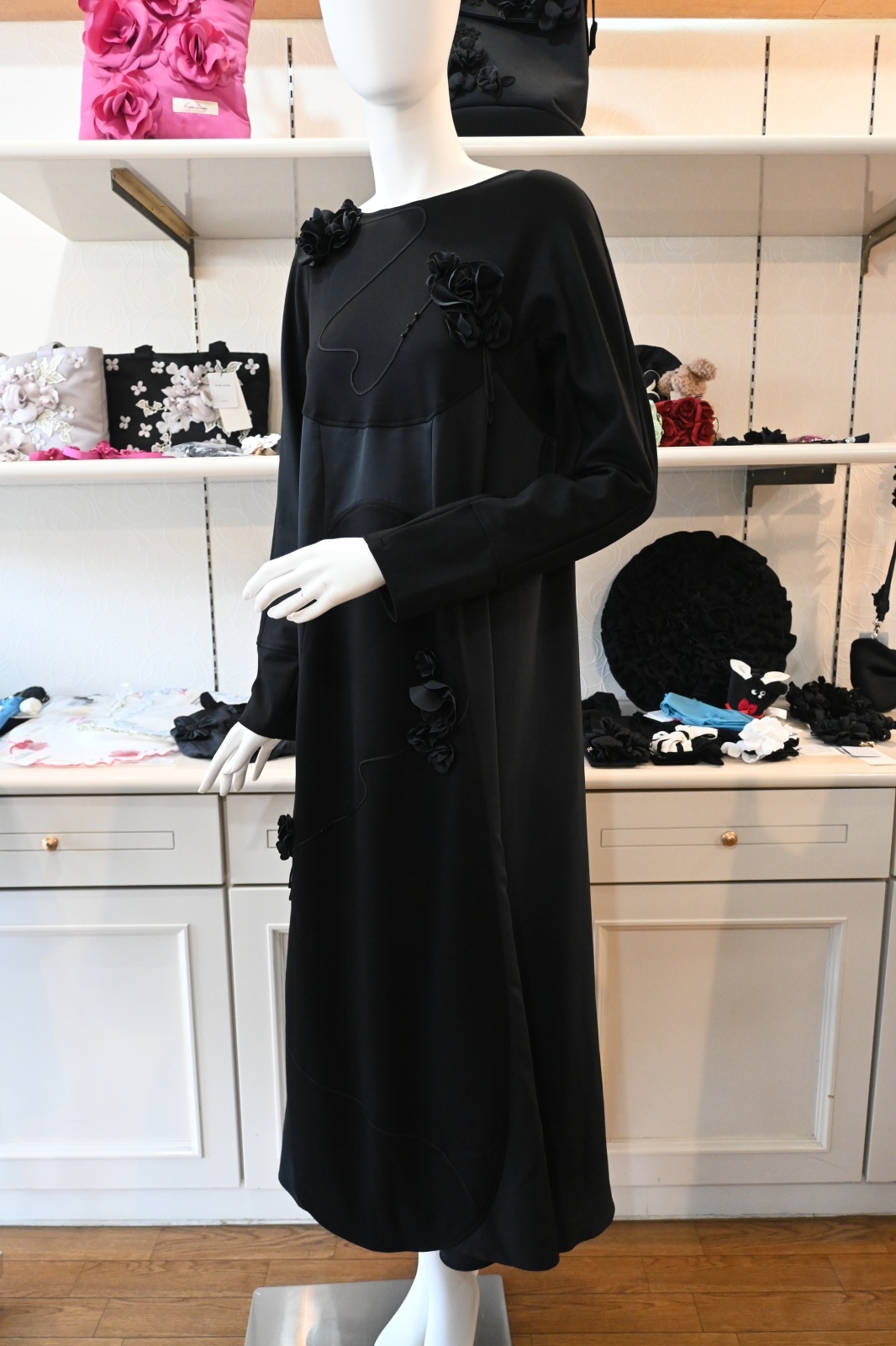 POTECHINO(ポテチーノ)日本庭園の様式(枯山水)からインスピレーションを受けたワンピース。腕の稼働をじゃましないようパターンにこだわり異素材の切り替え生地はとろみがあり、とても上品なイメージで着用いただけます。