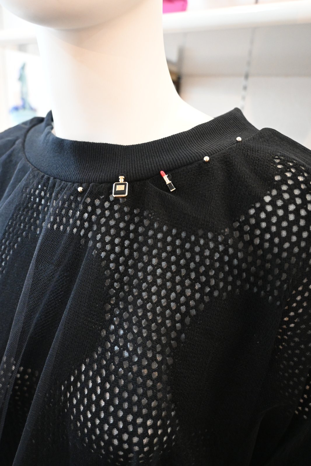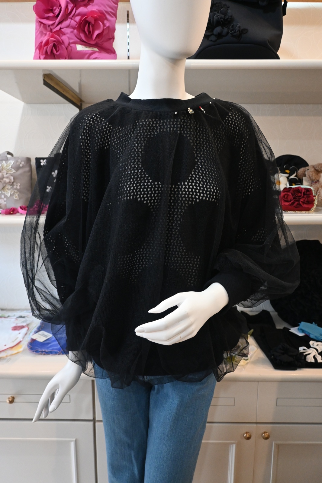 POTECHINO(ポテチーノ)水玉ニットにベールをまとったようなプルオーバー。インナーカラーで様々な印象で着用して頂けます。※他のカラーや関連アイテムのある商品に関しては、ページ下段の「関連商品」でご確認いただけます。