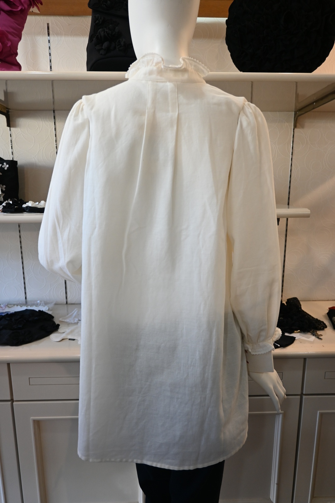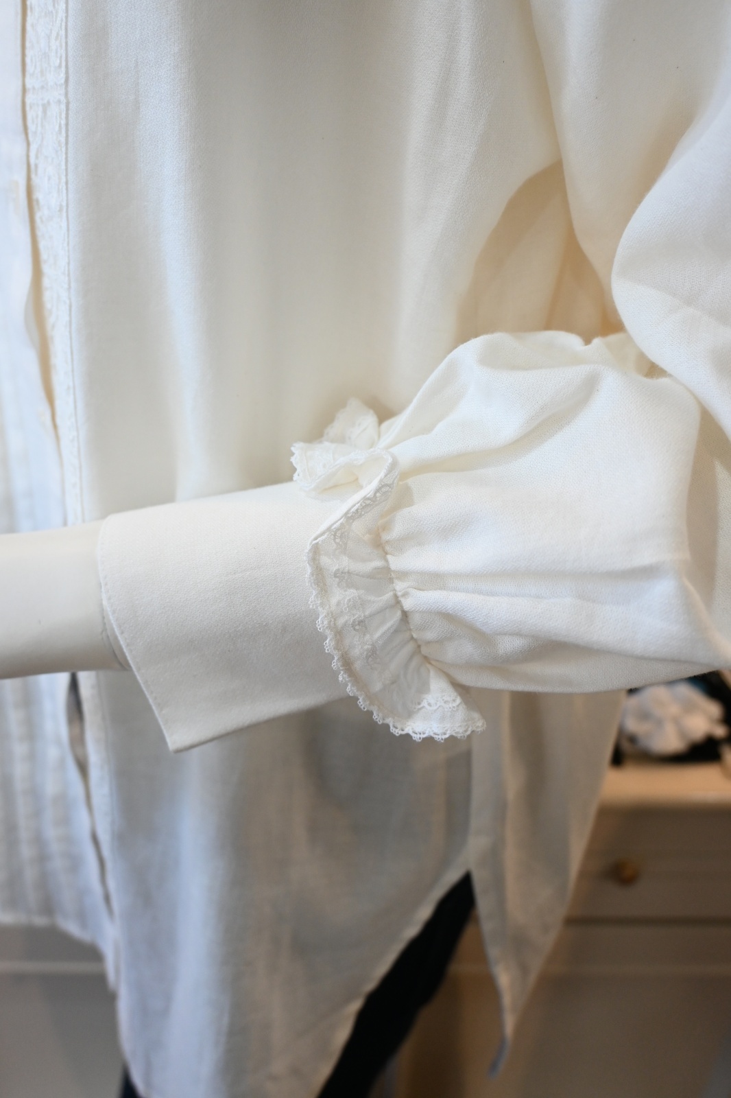 CAETLA(さえら)オーガニックコットンのブラウスのご紹介です。首と袖にあるフリルが可愛いです。