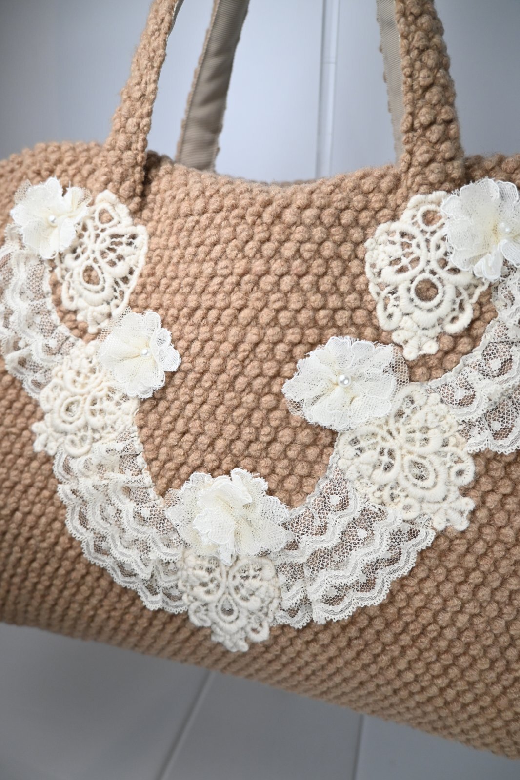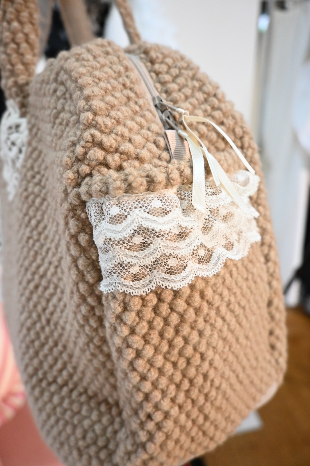 CAETLA(さえら)ポコポコの生地が可愛いレース使いがおしゃれなバッグです。