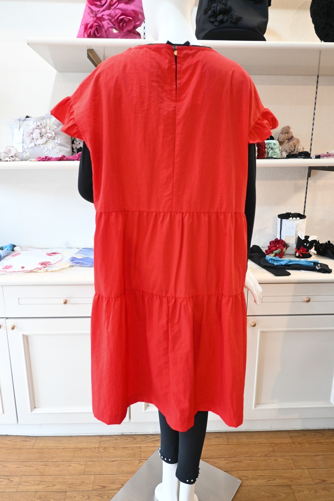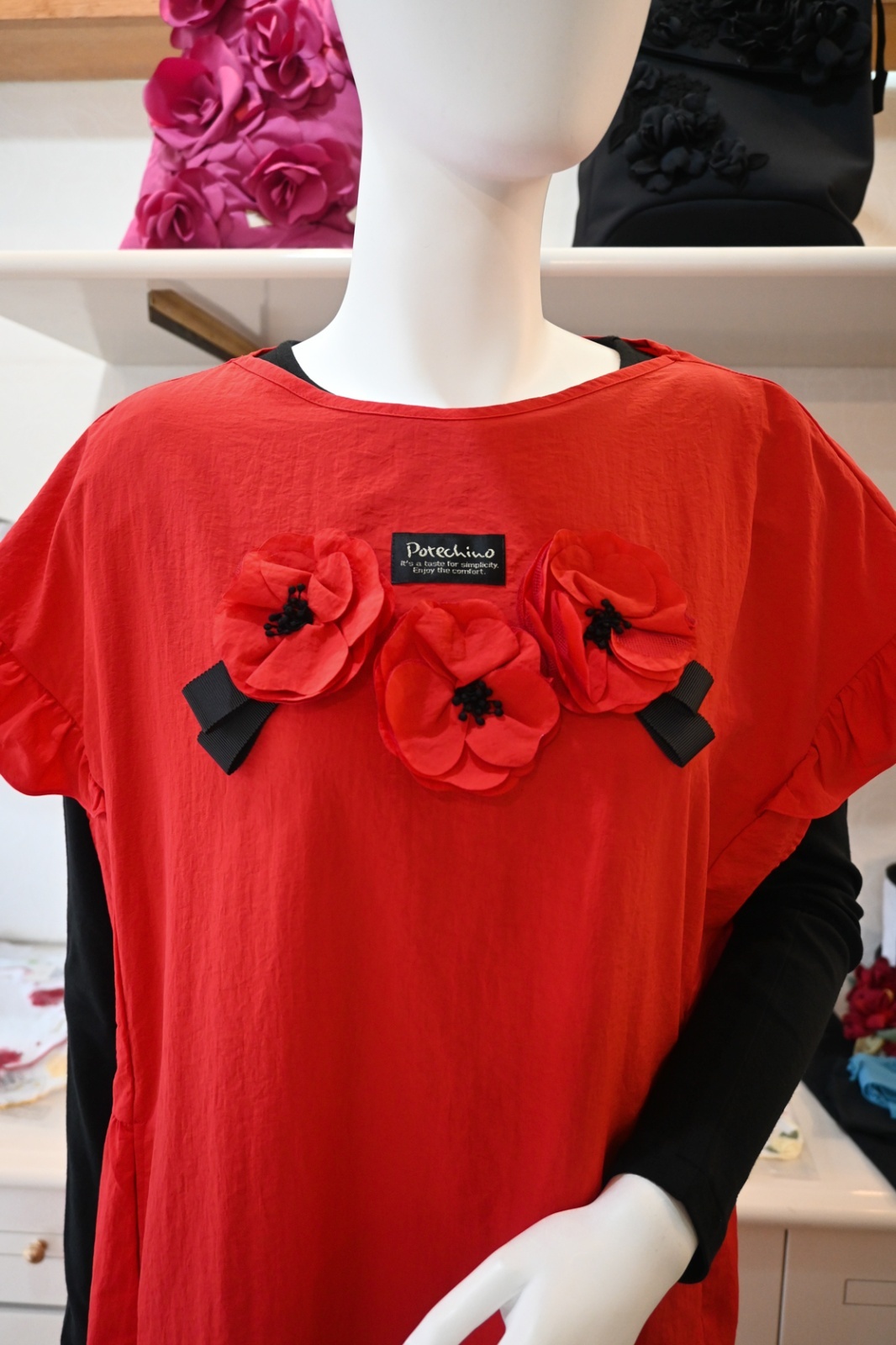 POTECHINO(ポテチーノ)毎シーズン楽しみなエプロンは人気アイテムです。肩のフリルと脇から後ろにかけてティアードラインにした新感覚のタブリエです。