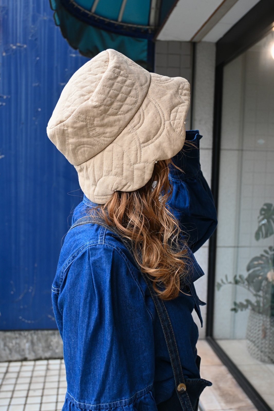POTECHINO(ポテチーノ)オリジナルのキルト。スカラをデザインポイントにし裏地のカラーも冬の着こなしのアクセントに。helloの刺繍入りです。