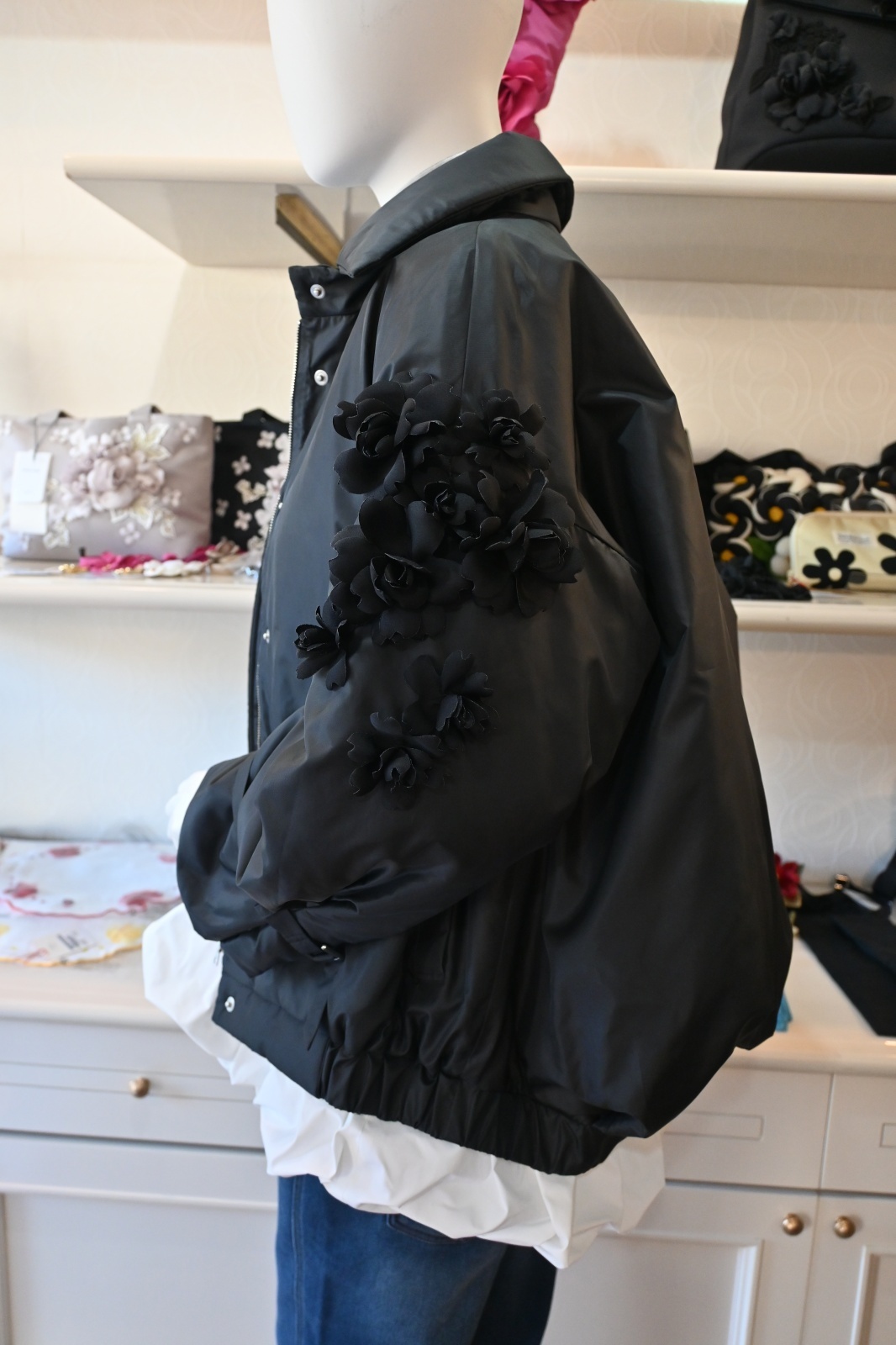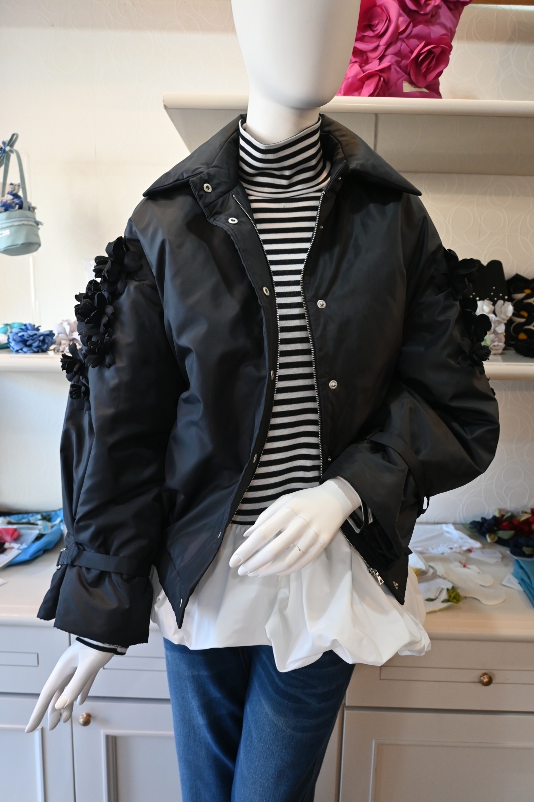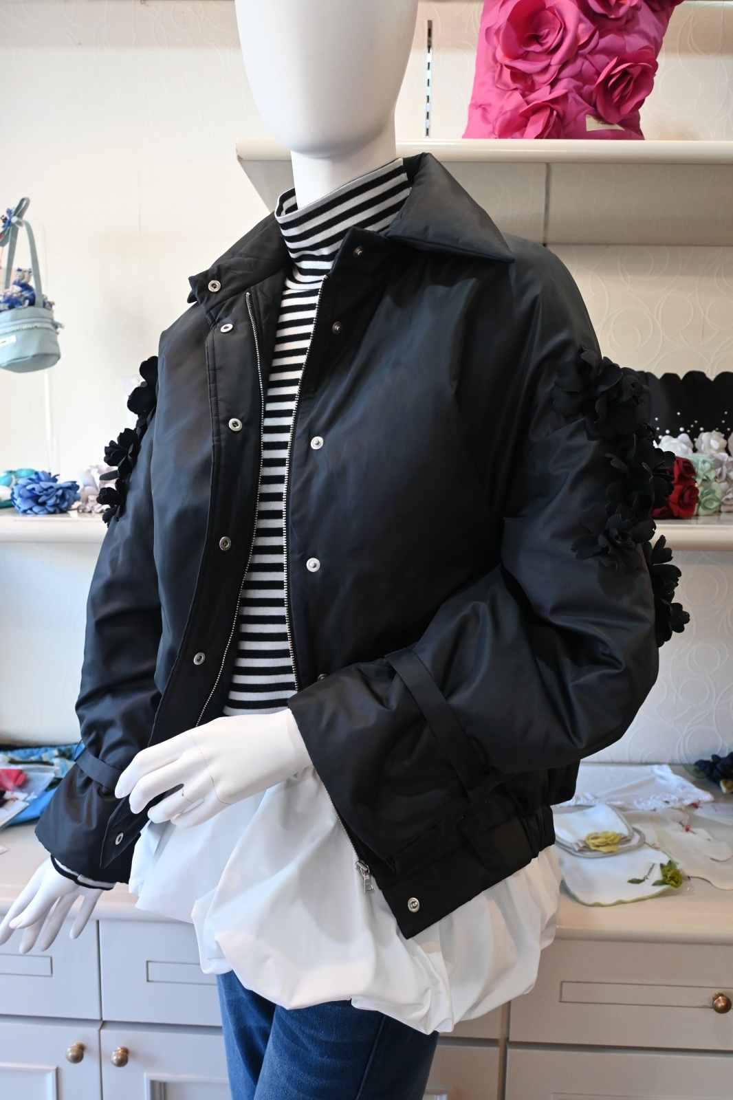RainDance(レインダンス)光沢感のあるエレガントな中綿ジャケット。バックスタイルやお袖の丸みを帯びたシルエットが女性らしさを引き立てます。