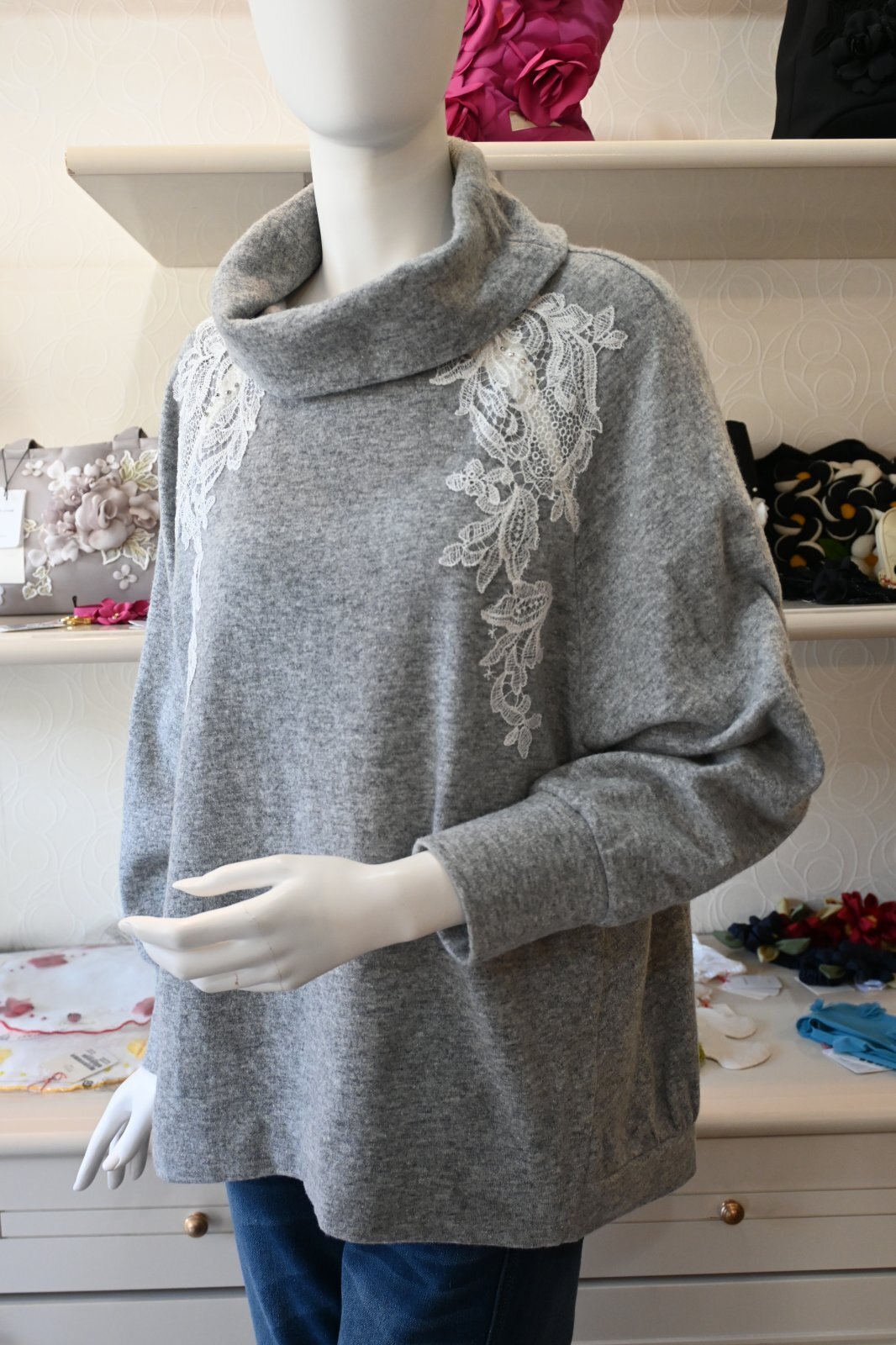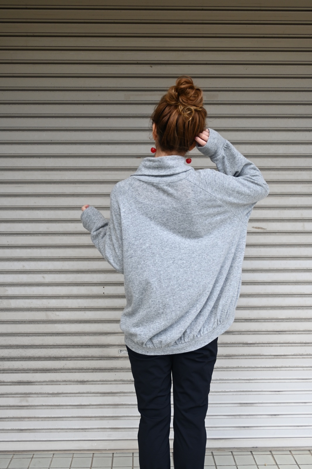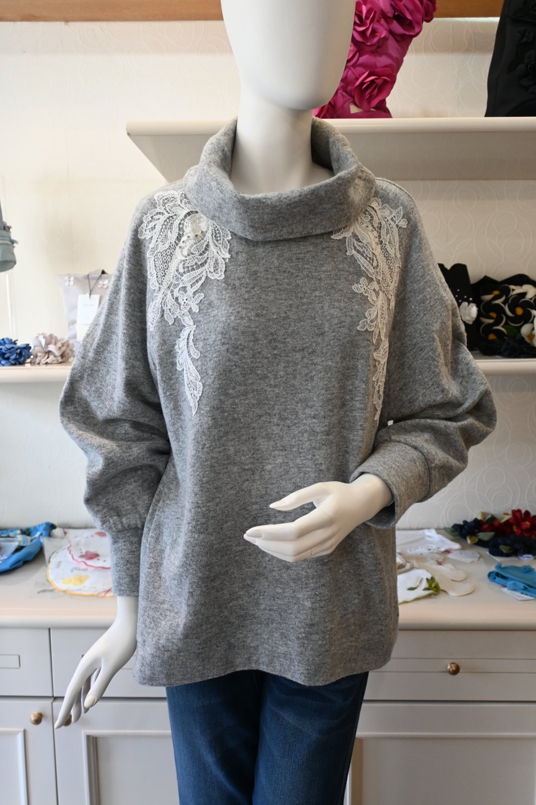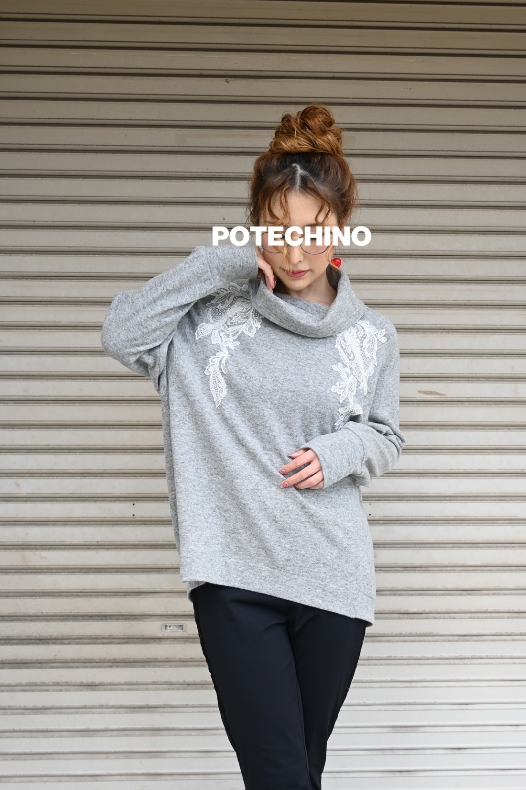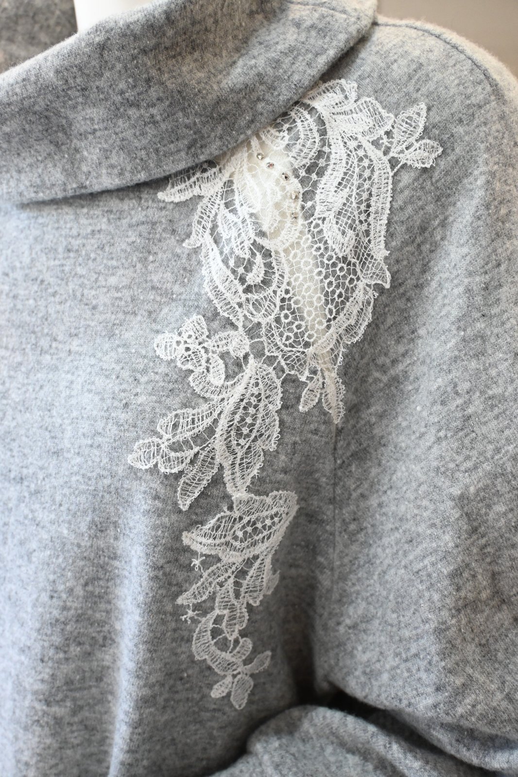 NAPATA MELLOE(ナパータメロエ)ラグラン位置に配置したレースの下にはポイントカラーが入っていてレースの色を引き立てます。前裾はスッキリと後はふんわりフォルムのかわいいプルオーバーです。