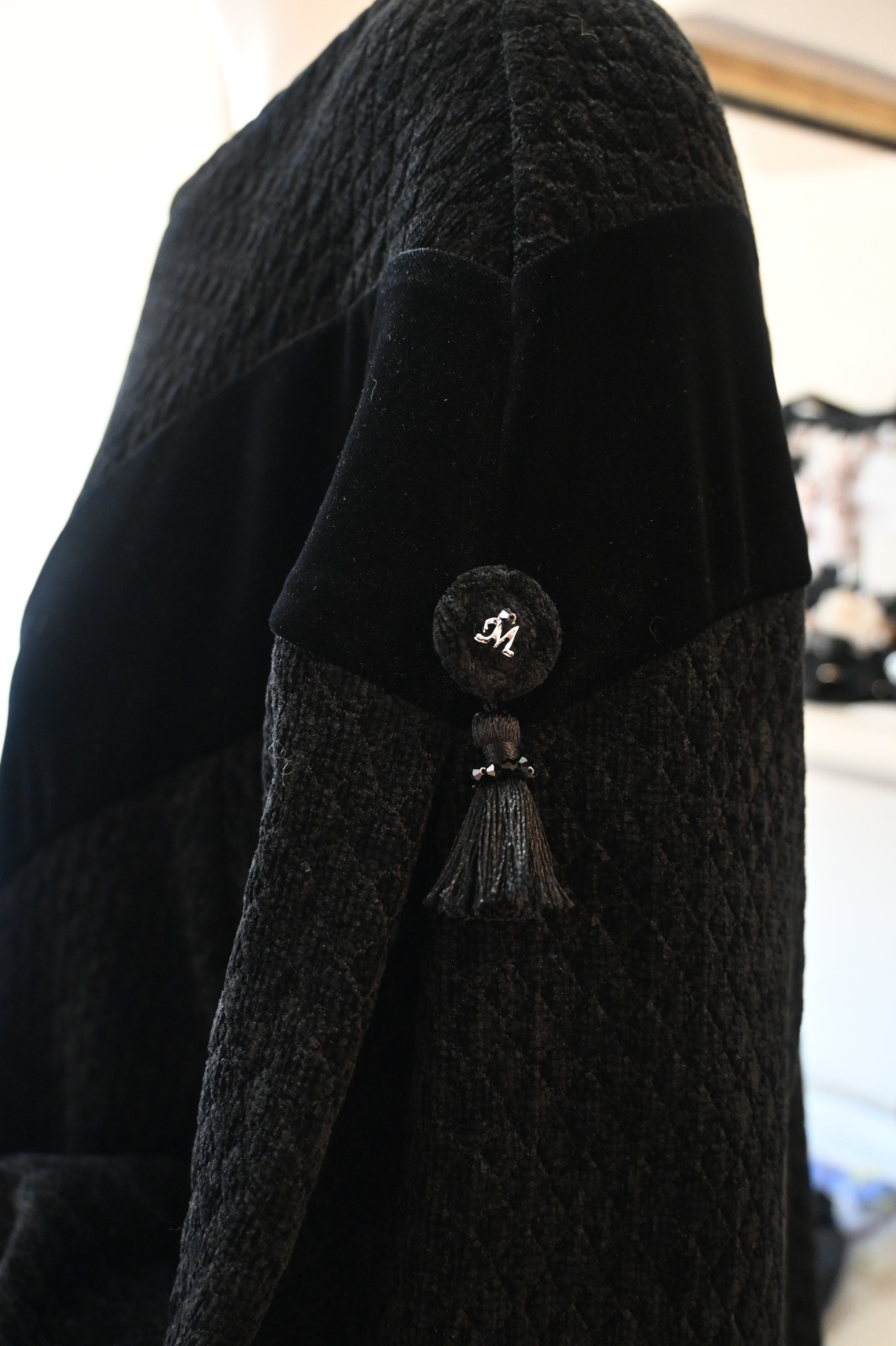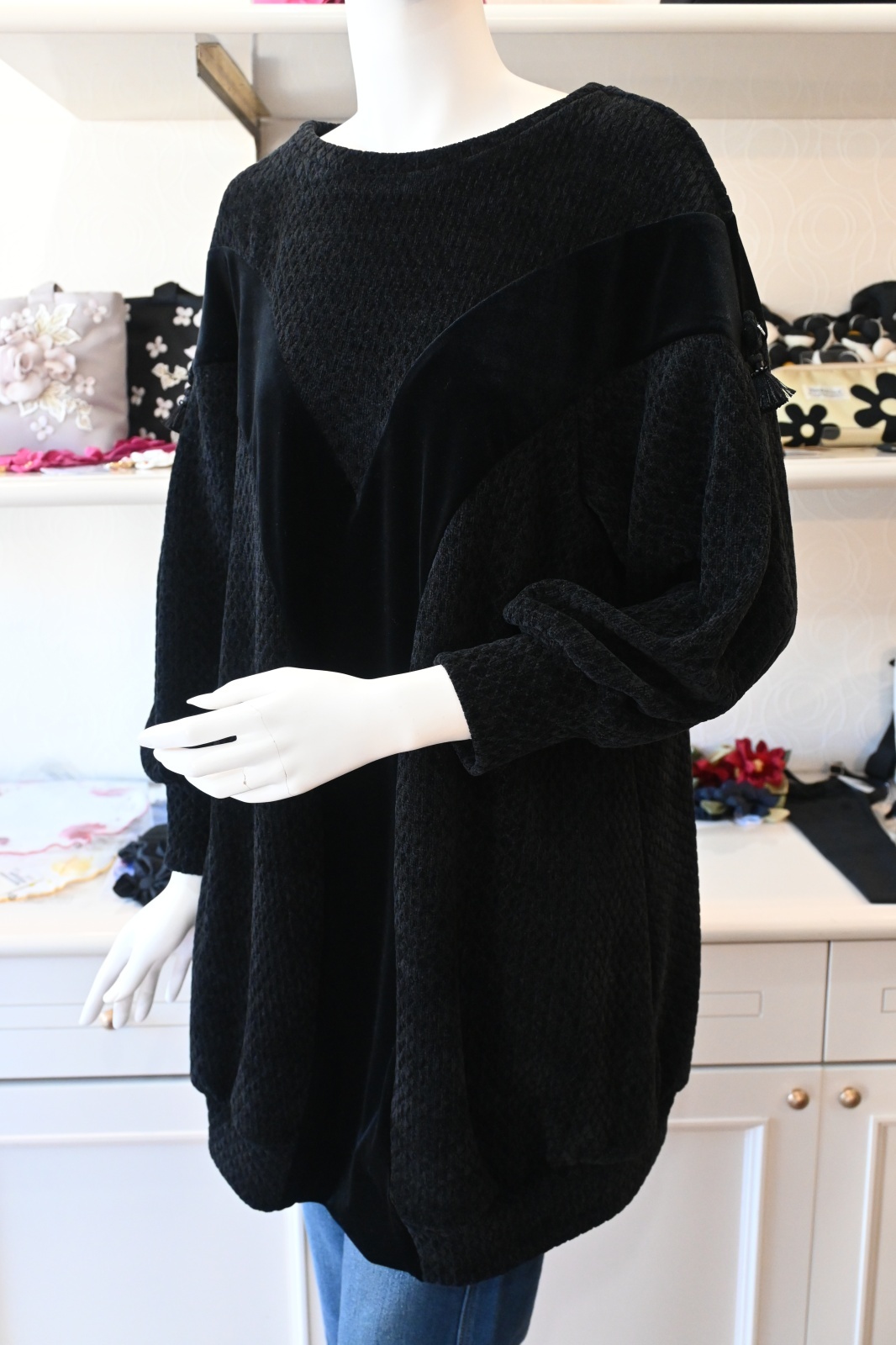 NAPATA MELLOE(ナパータメロエ)ベロアとの切り替えをデザインに溶け込み丸みのあるフォルムで大人フェミニンさを出しました。くるみボタンとタッセルのディティールでクラシックなイメージに仕上げています。