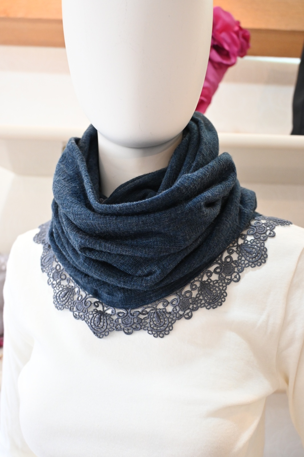 HISCHRONE(ヒスクローネ)襟元を華やかにしてくれる美しいレースを使用したスヌードです。画像は2重に巻いています。一重で肩にかけるだけでも素敵になります。カラーや関連アイテムのある商品に関しては、ページ下段の「関連商品」でご確認いただけます。