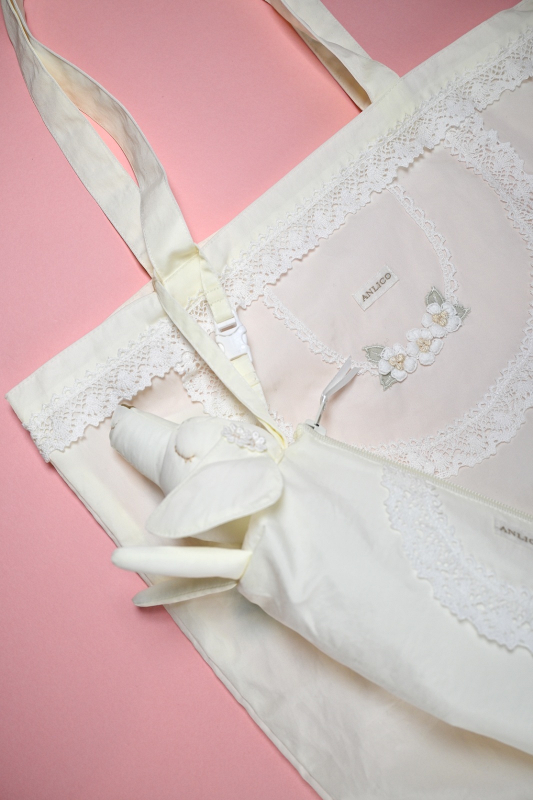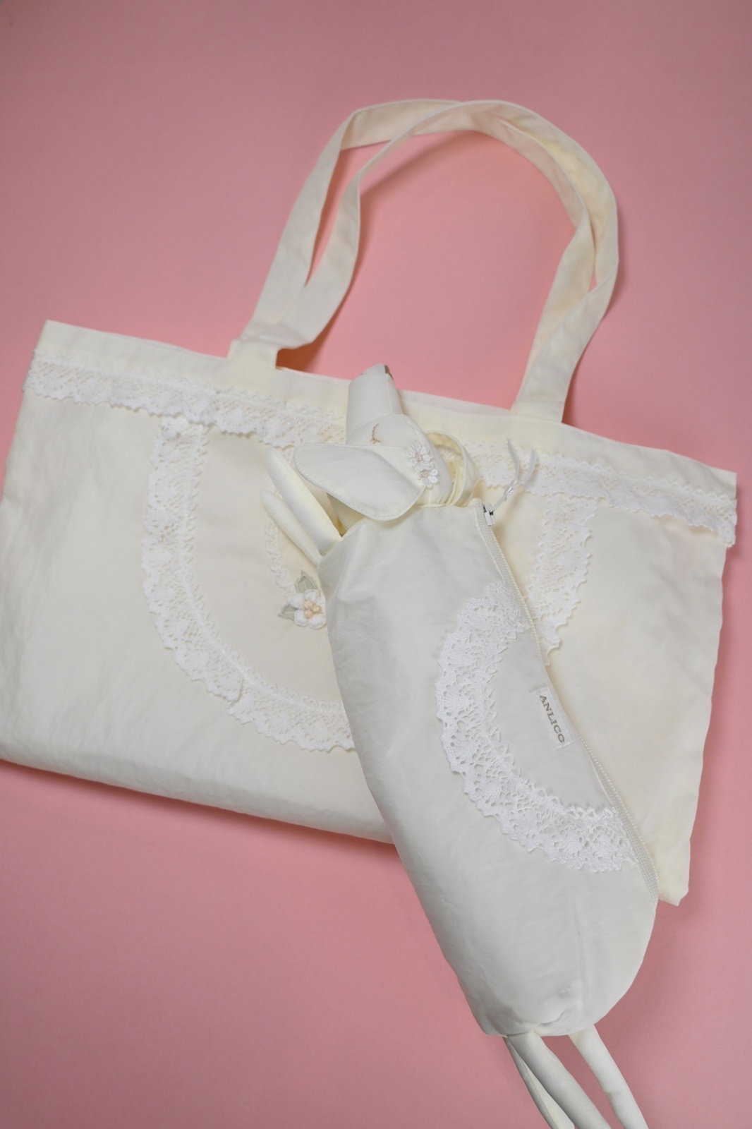 | 素材 | ポーチ本体:ナイロン100% 部分:ポリエステル 人工皮革 レース:綿 バッグ本体:ナイロン100% レース:綿 |