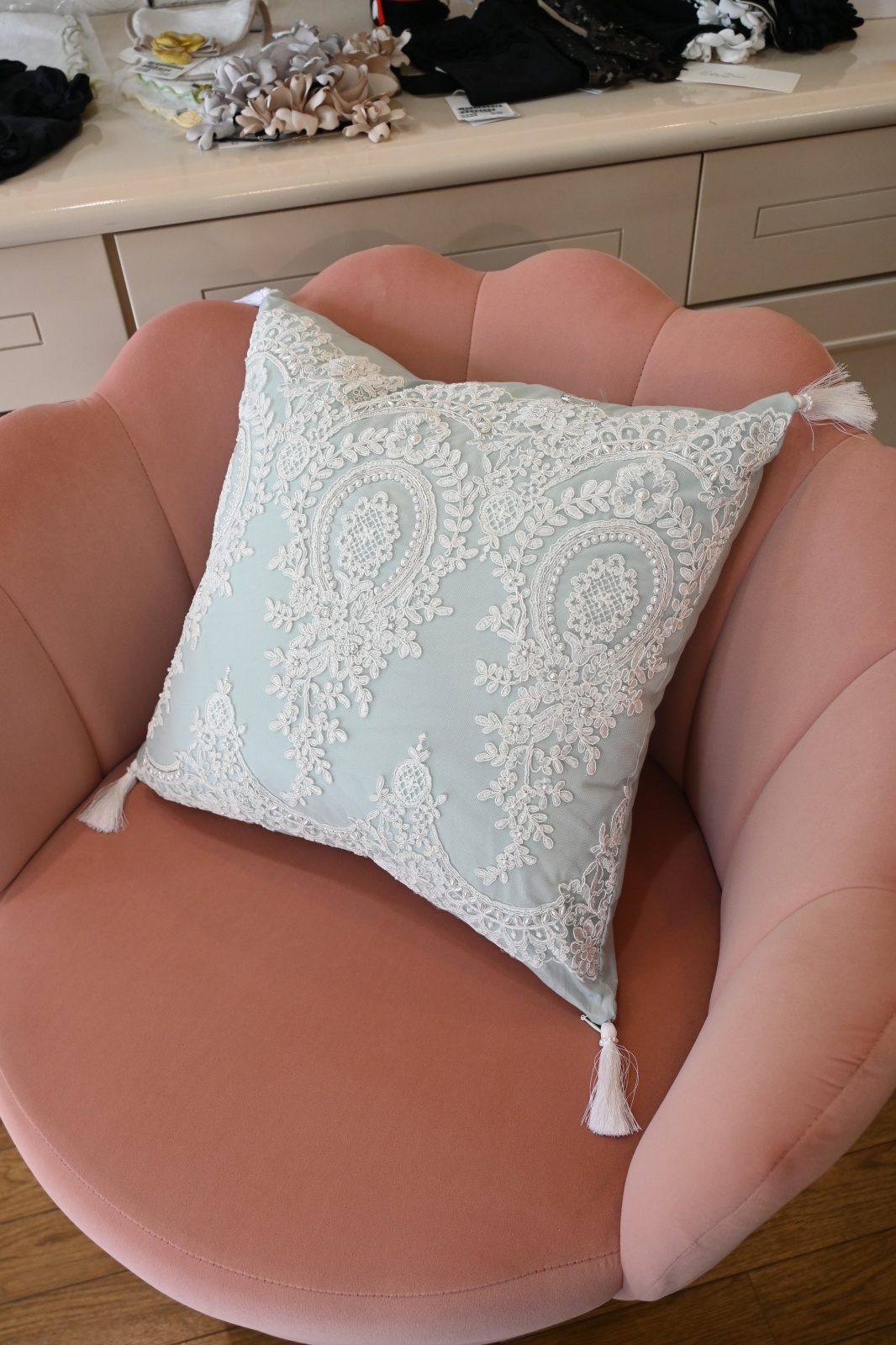CAETLA(さえら)素敵なクッションをご紹介です。カラーを生かして透明感のあるディテールで仕上げています。