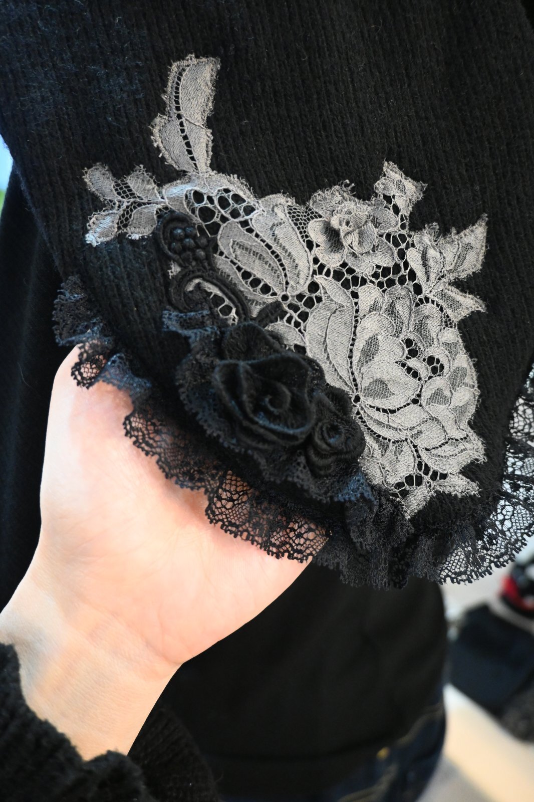 本体:アクリル43% 毛41% ポリエステル16% レース:綿