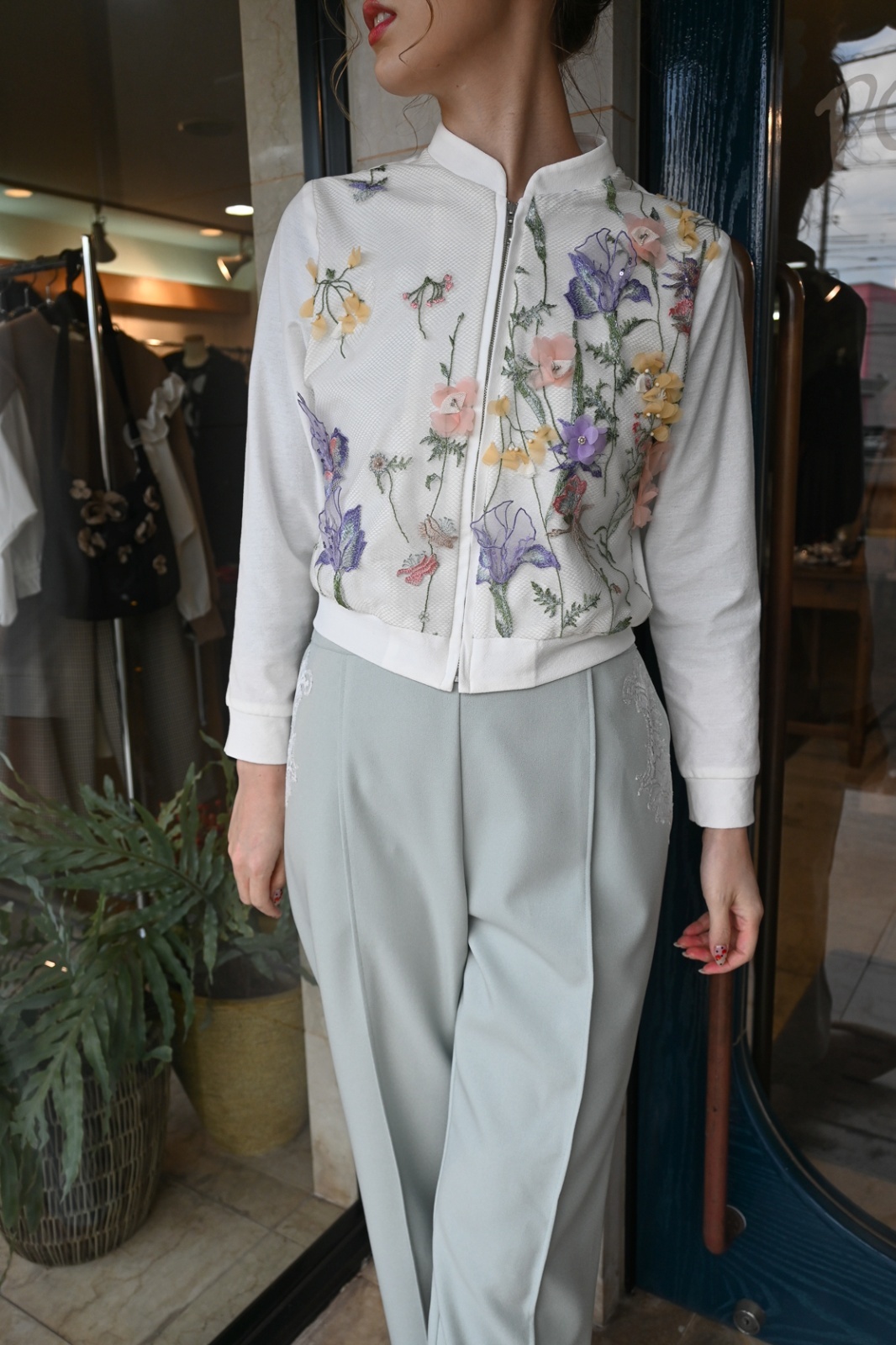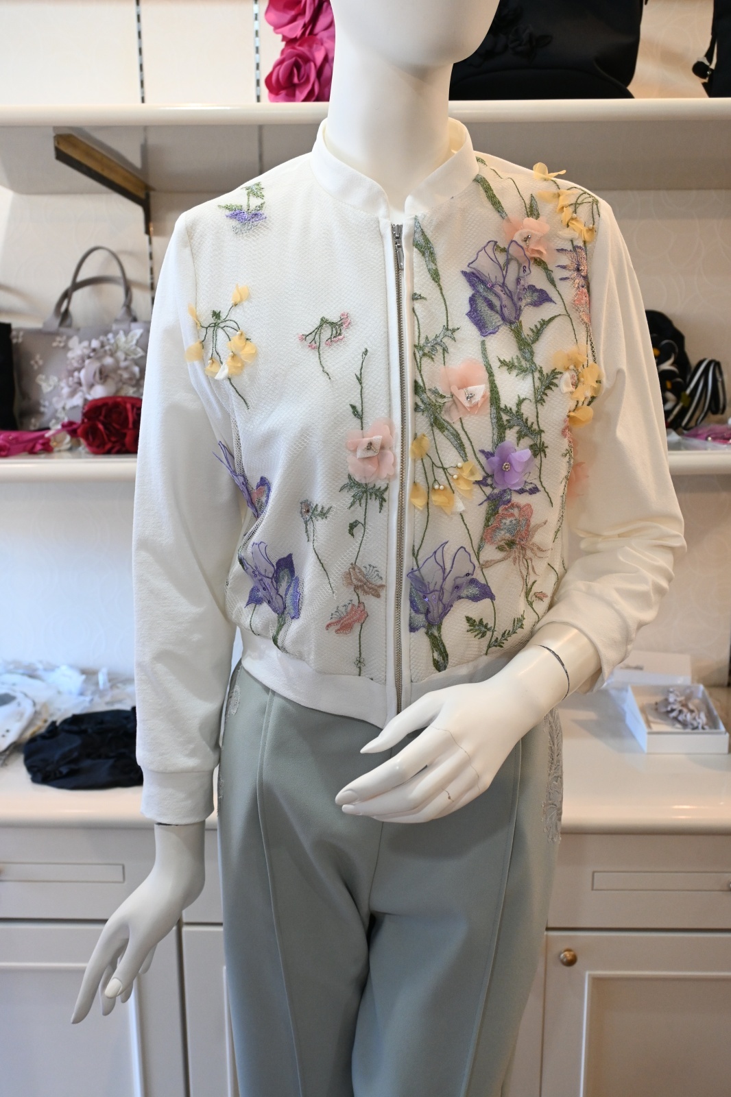 CAETLA(さえら)庭園を思わせる色とりどりのお花が特徴のアムンゼン素材のニットブルゾンです。ショート丈なのでスカートやワンピースにも合わせやすい軽やかな丈感に仕上がっています。p>※他のカラーや関連アイテムのある商品に関しては、ページ下段の「関連商品」でご確認いただけます。