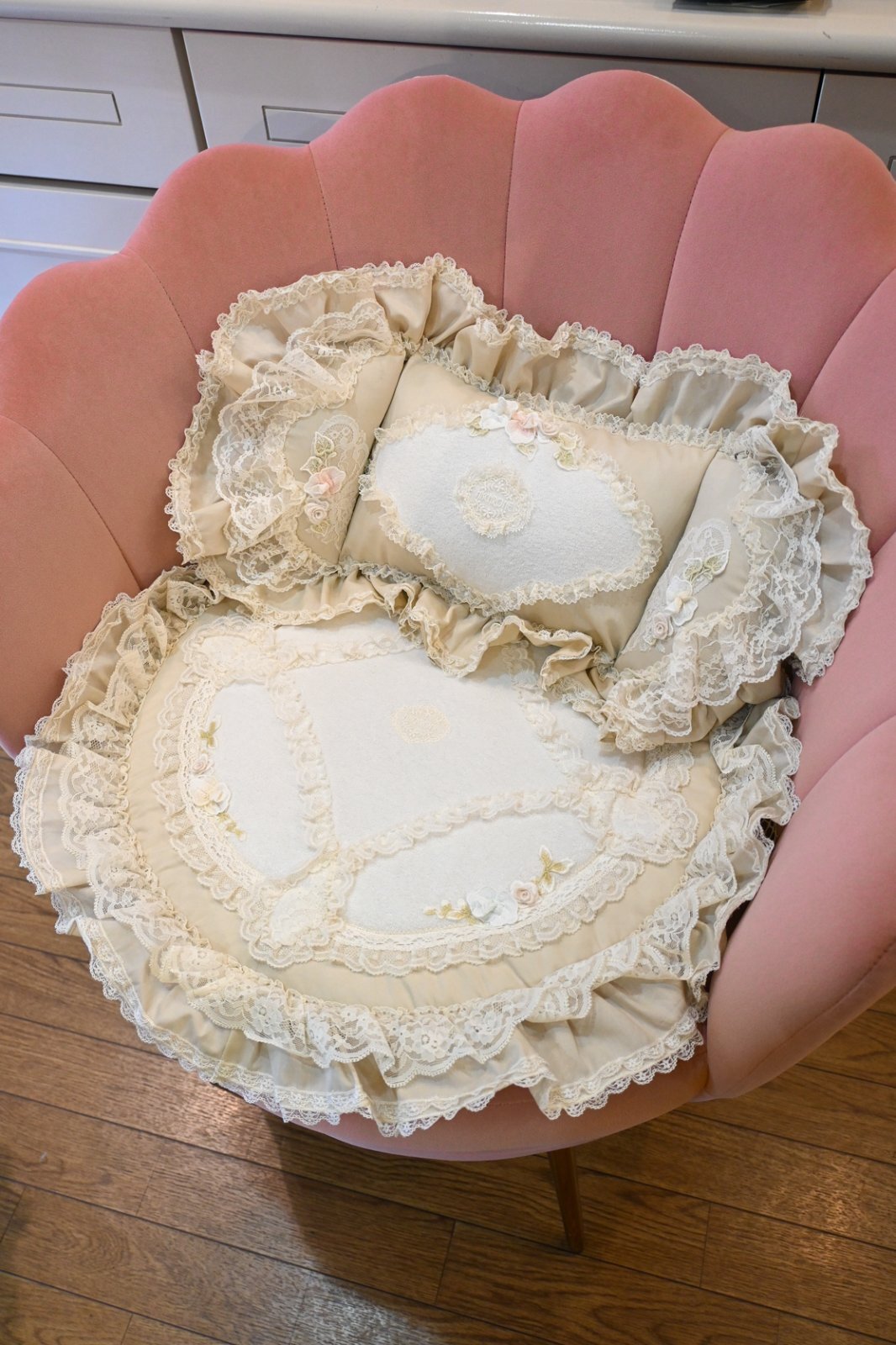 | サイズ | クッションサイズ:縦約45cm×横約45cm フリル幅:約7cm |