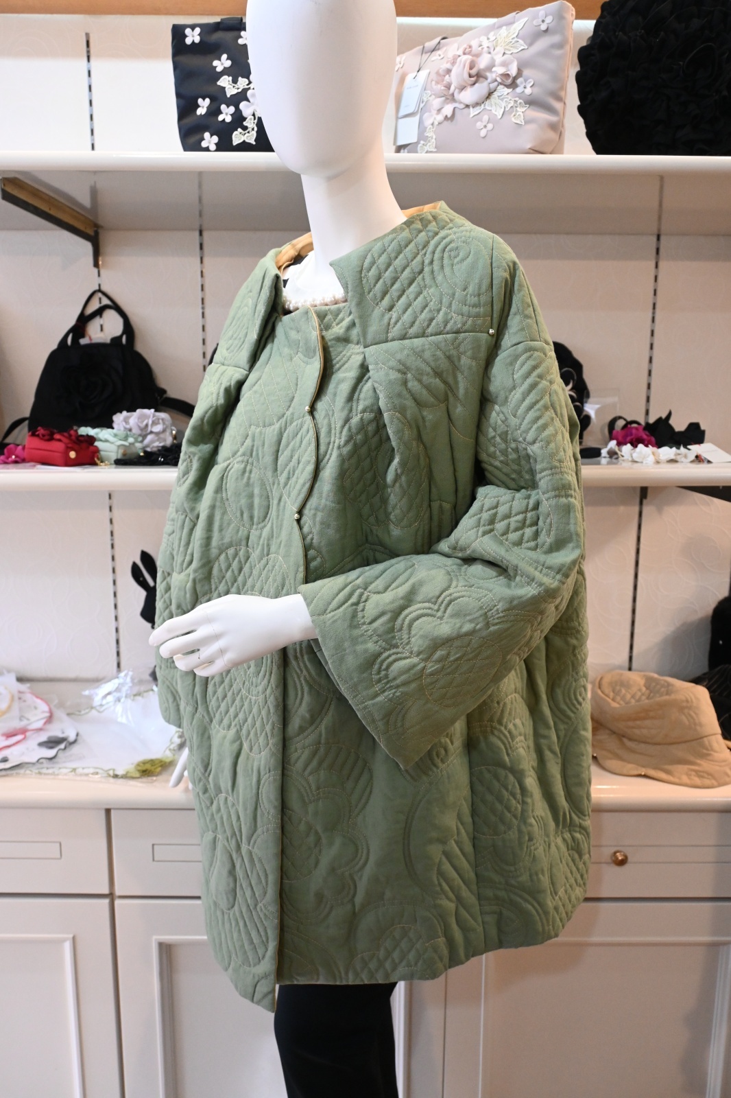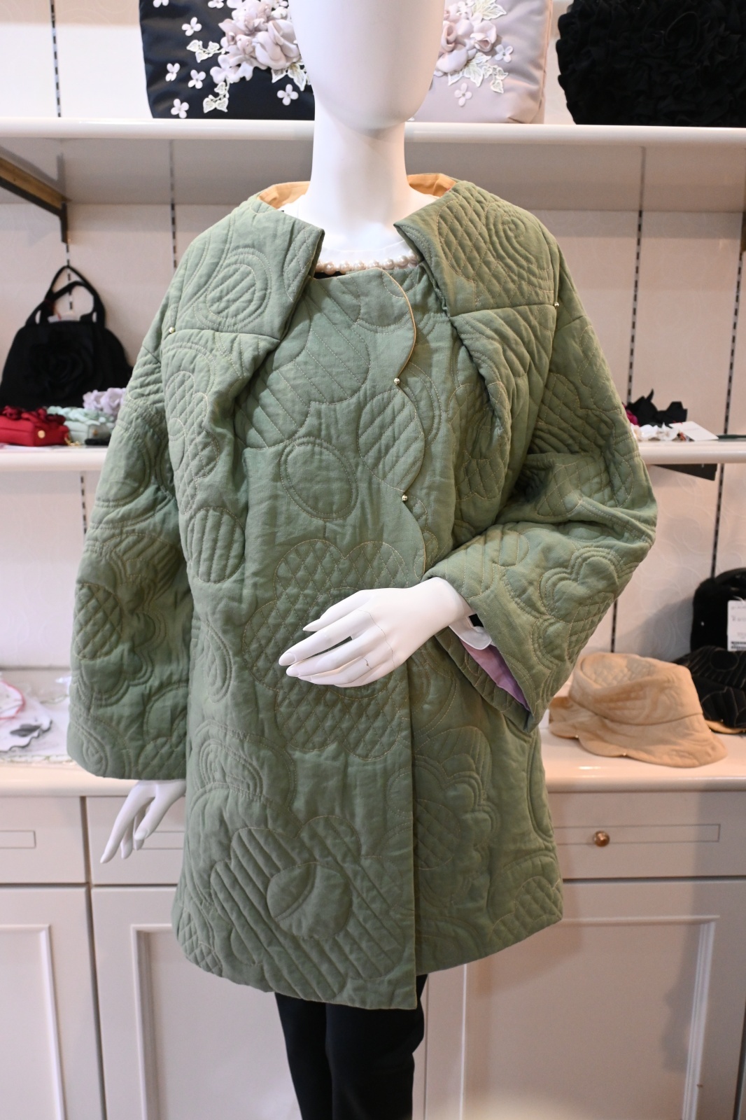 POTECHINO(ポテチーノ)オリジナルキルト生地を使ったコートです。本体のパターンにこだわり少し個性的なコートを作りました。裏地を2色使いしゴールドの刺繍で今回のテーマを大胆にのせました。※他のカラーや関連アイテムのある商品に関しては、ページ下段の「関連商品」でご確認いただけます。