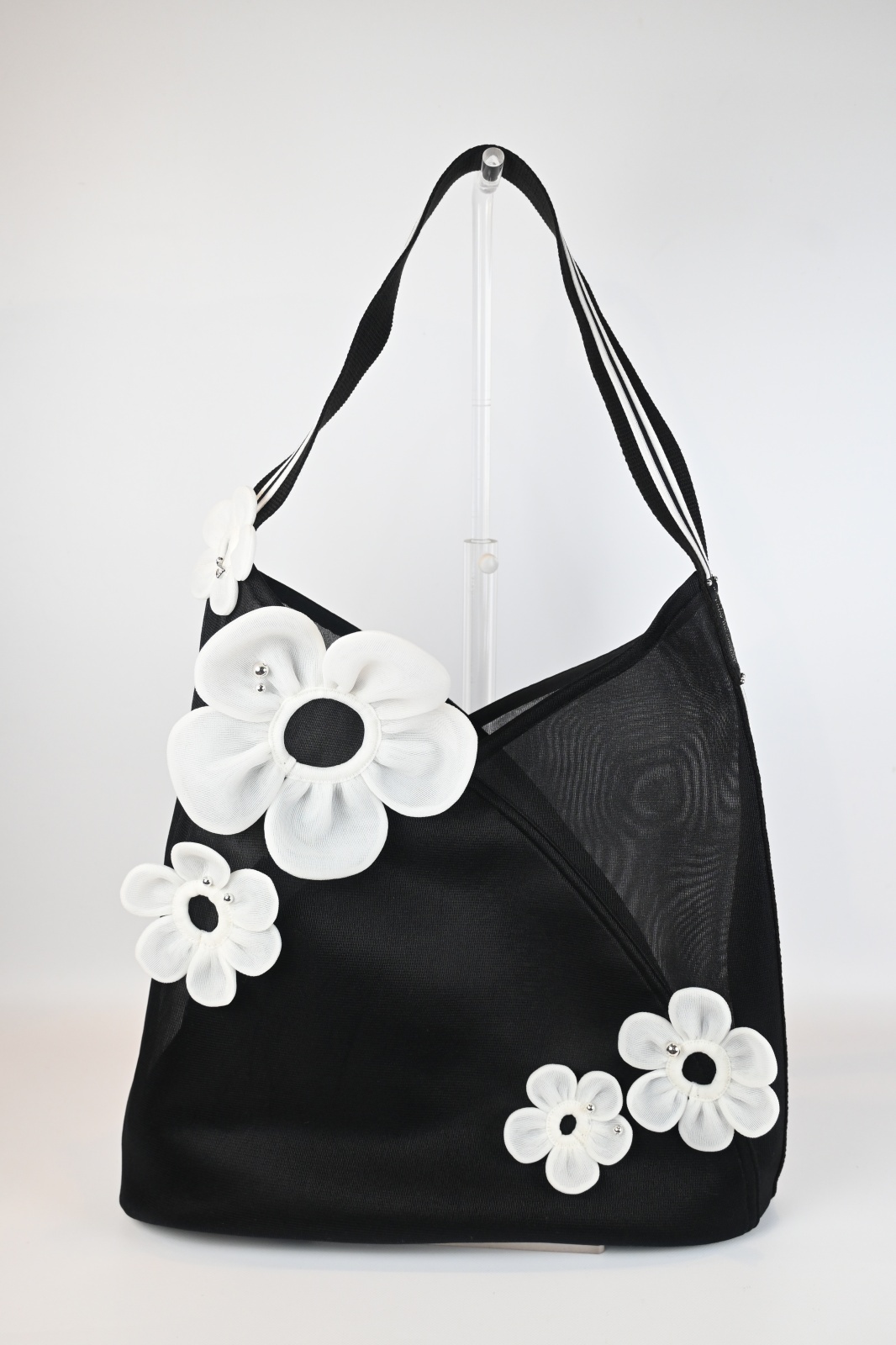 POTECHINO(ポテチーノ)肉厚な透け感のある素材で春夏向けのバッグを作りました。歌っているSINGモチーフを使いストライプと合わせカジュアルながらも華やかになるようにデザインされています。