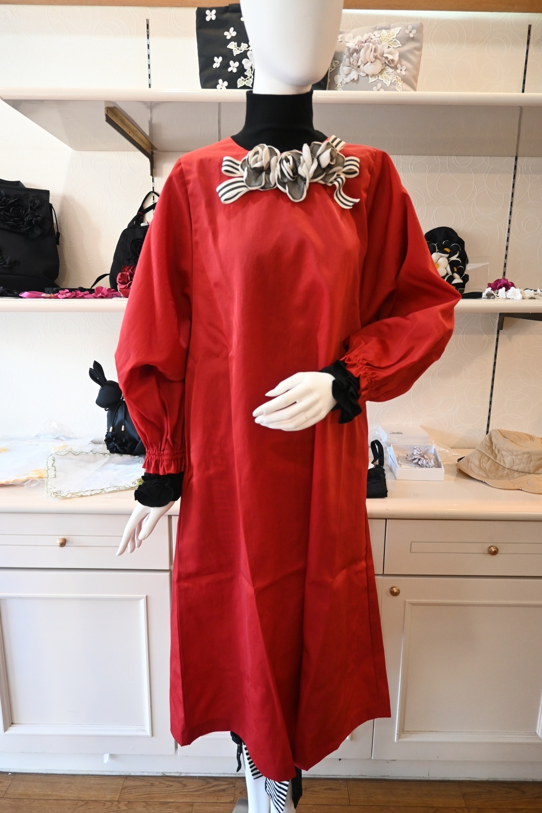 | サイズ | ロング バスト:約126cm 着丈:116cm 後ろスナップボタン開閉 |