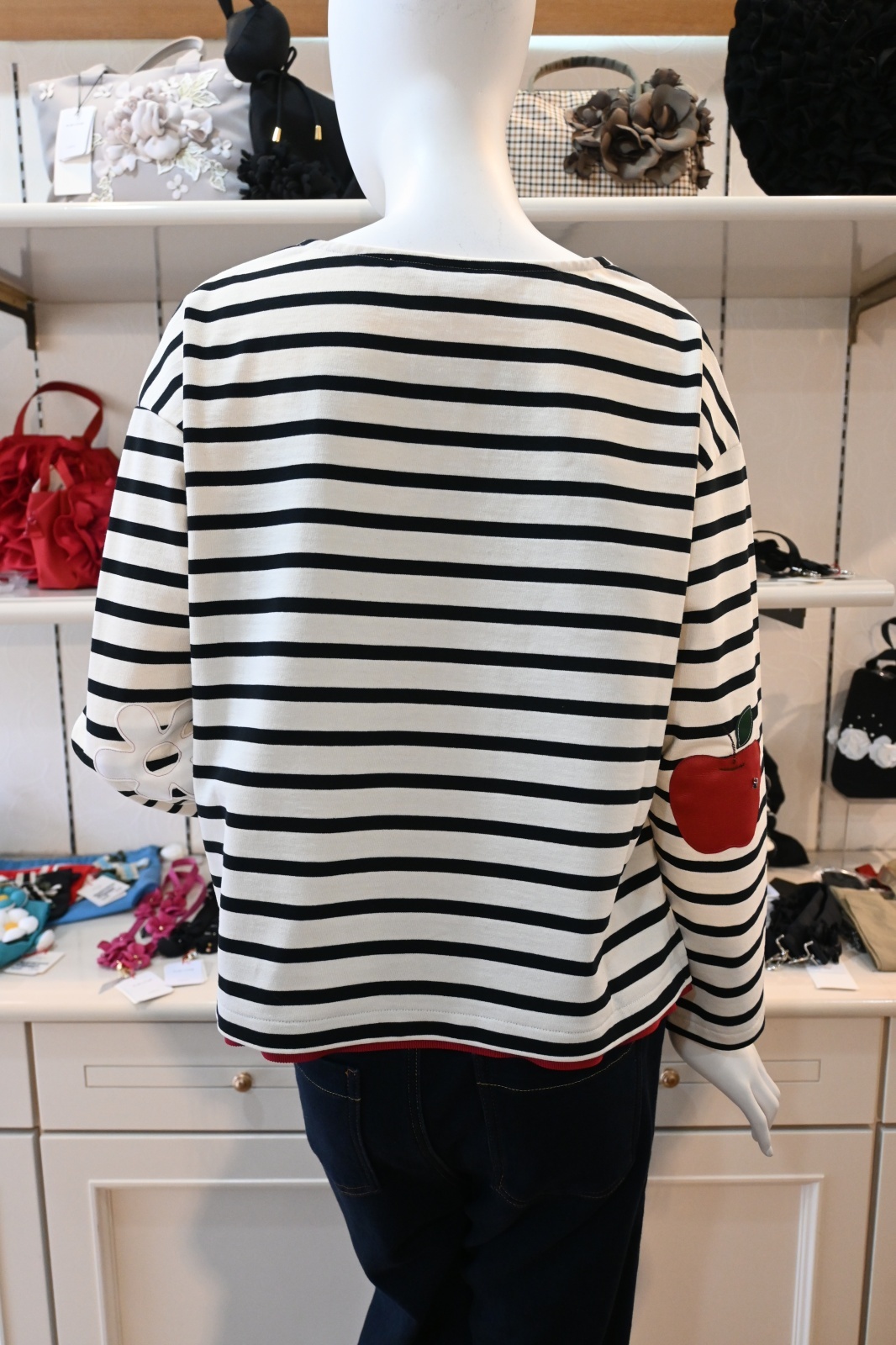 POTECHINO(ポテチーノ)エルボーパッチにポテネッタとりんごモチーフをあしらったボーダーカットソー。後身が少し長めになっておりちらっと見える飾りリボンもポイント。カジュアルなサイズ感です。p>※他のカラーや関連アイテムのある商品に関しては、ページ下段の「関連商品」でご確認いただけます。