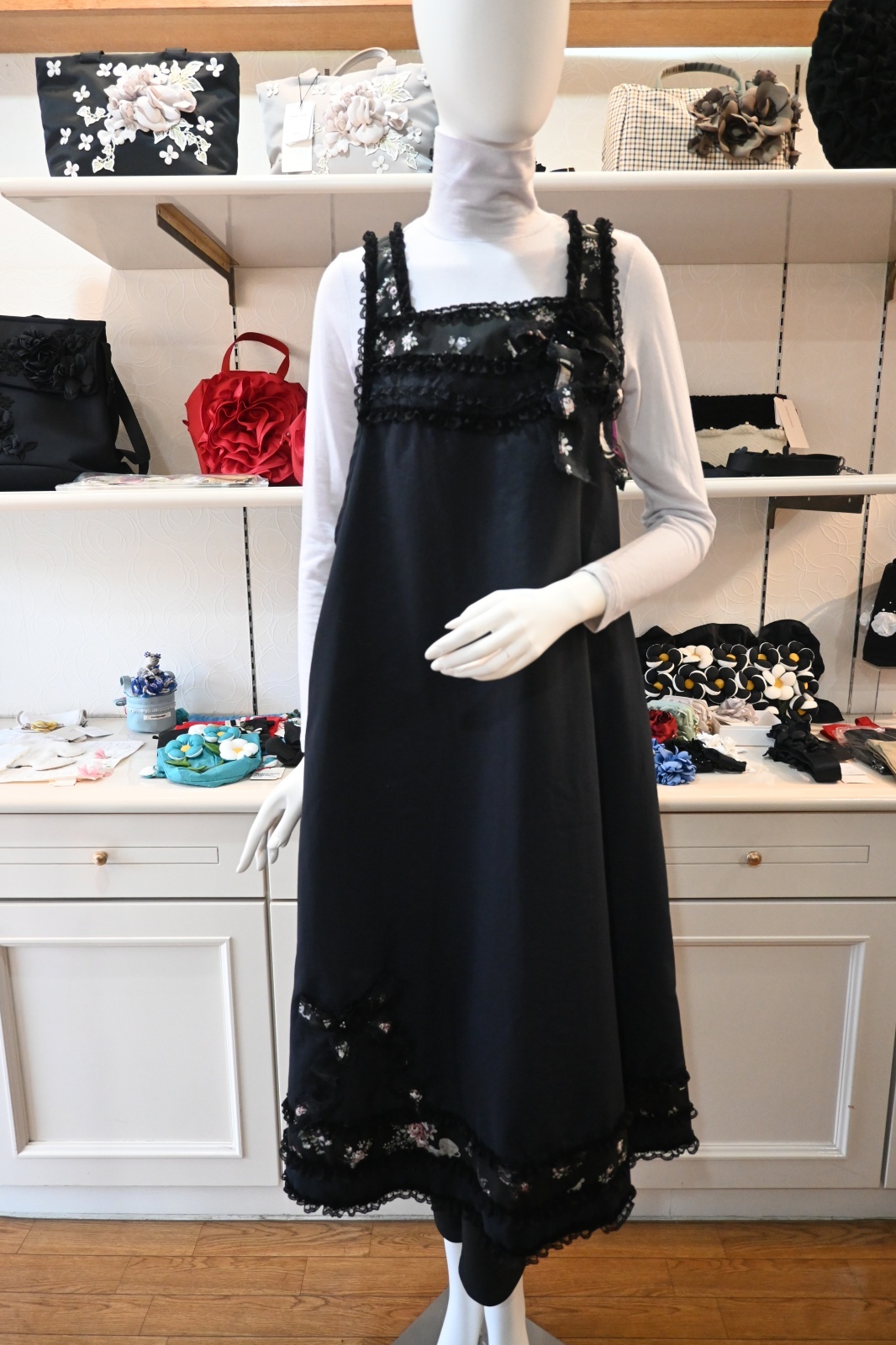 | サイズ | フリーサイズ バスト:約106cm(平置き採寸) 総丈:117cm 肩から採寸 |