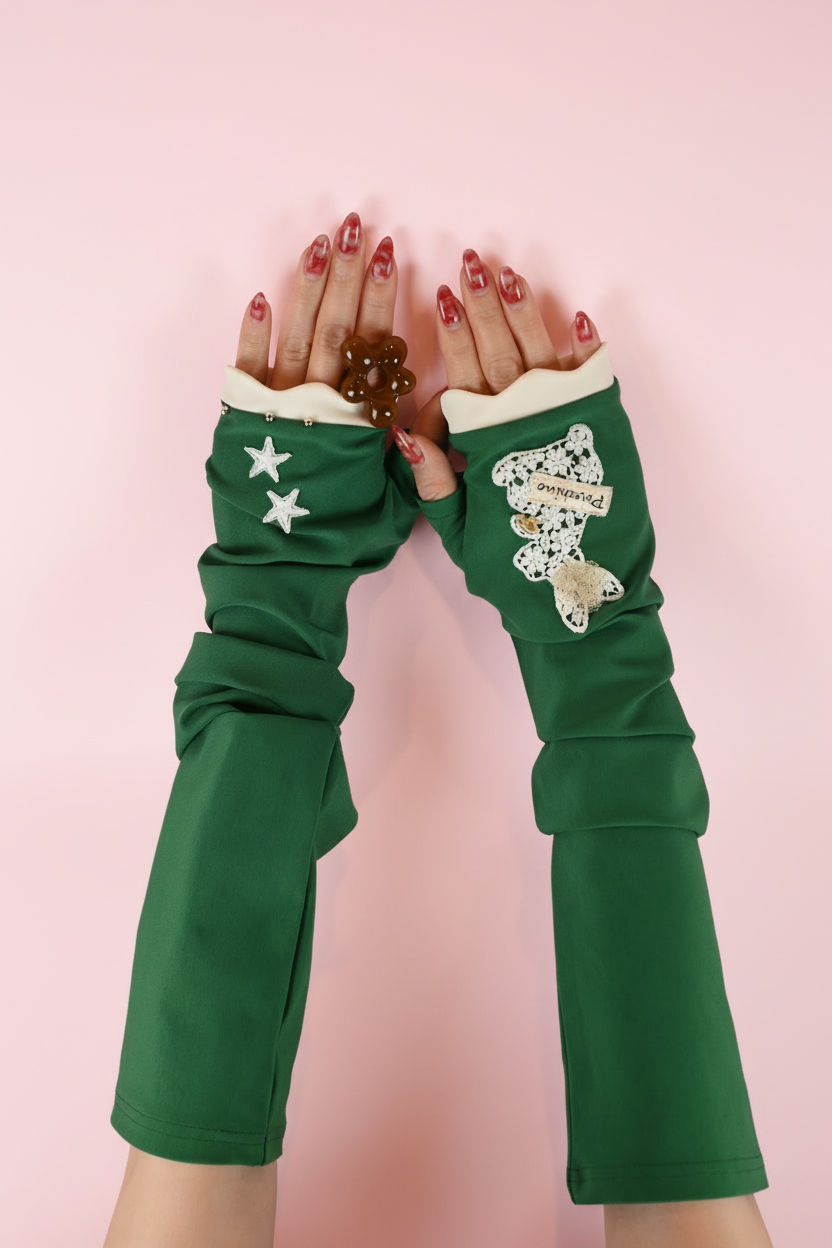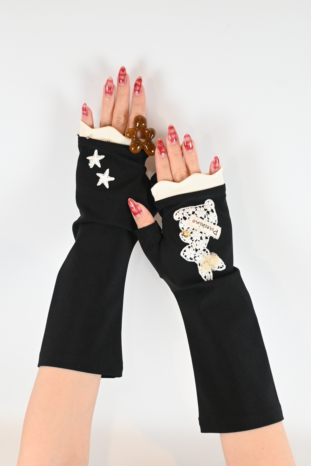 POTECHINO(ポテチーノ)接触冷感、UVカットの機能素材で日除け手袋を作りました。リブのスカラをポイントにしAppleバニーでかわいらしい印象に。