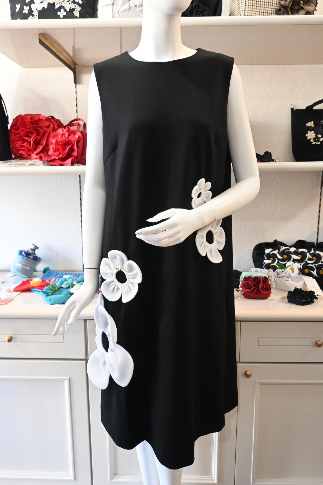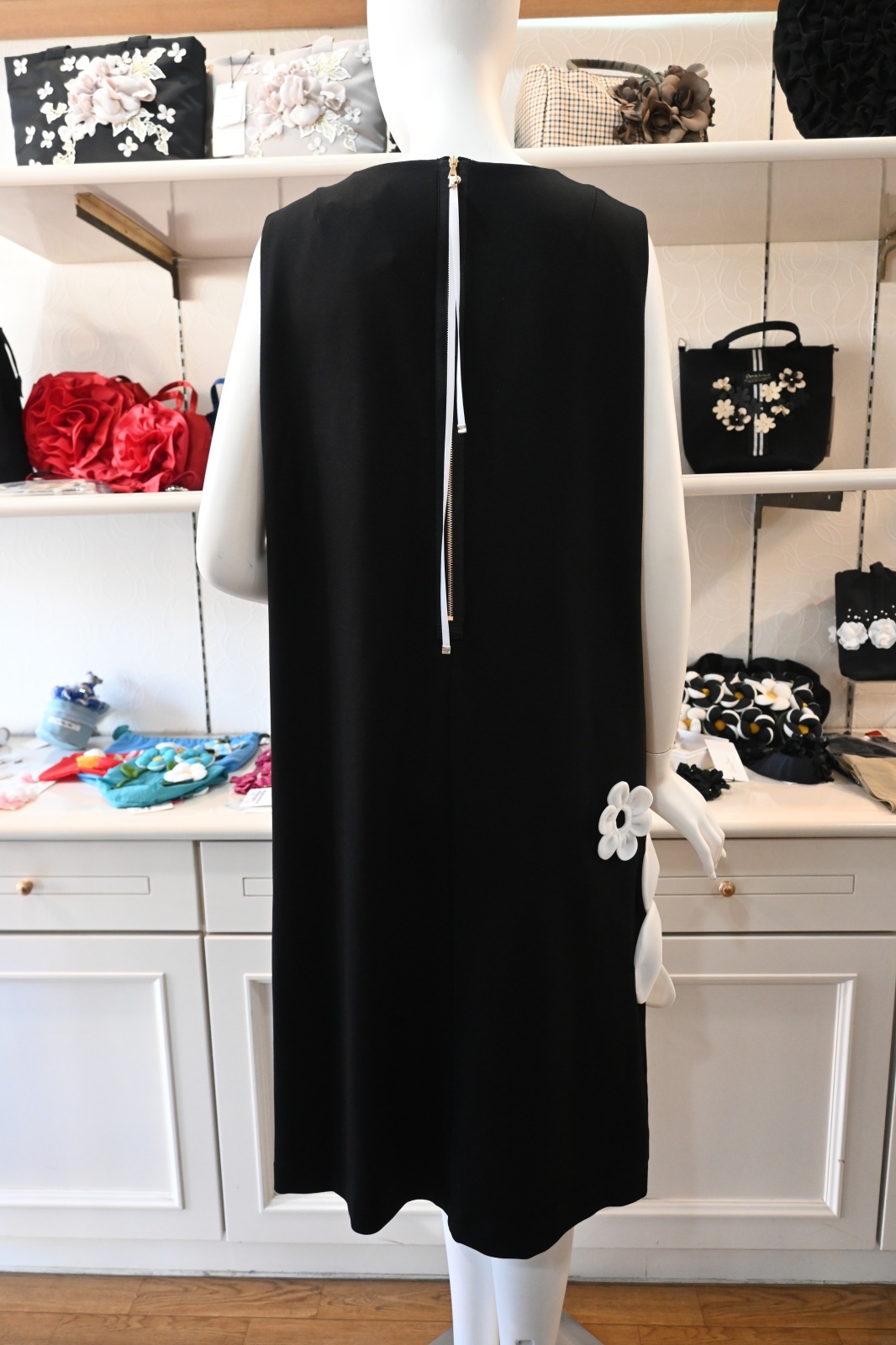 POTECHINO(ポテチーノ)クラシックなラインのボディにSINGのお花を大胆にのせました。本体には伸縮性のある素材を使いノンストレスで着用して頂けます。そう裏地付き。