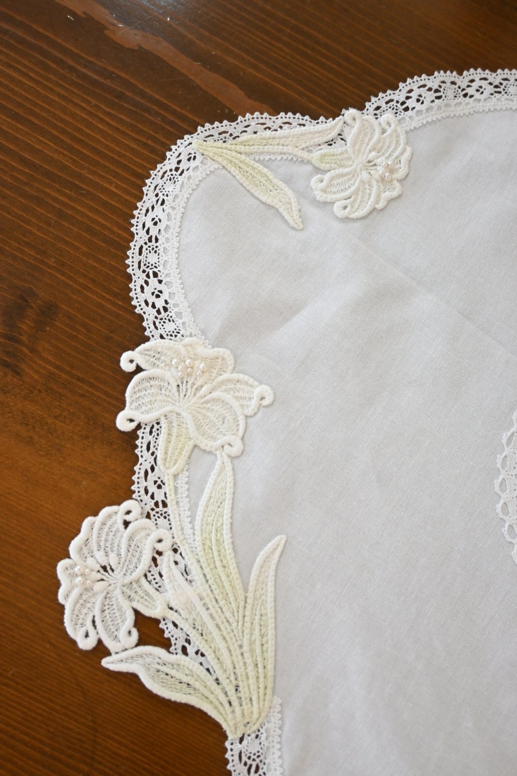 ANLICO(アンリコ)ユリレースが素敵なテーブルセンターです。