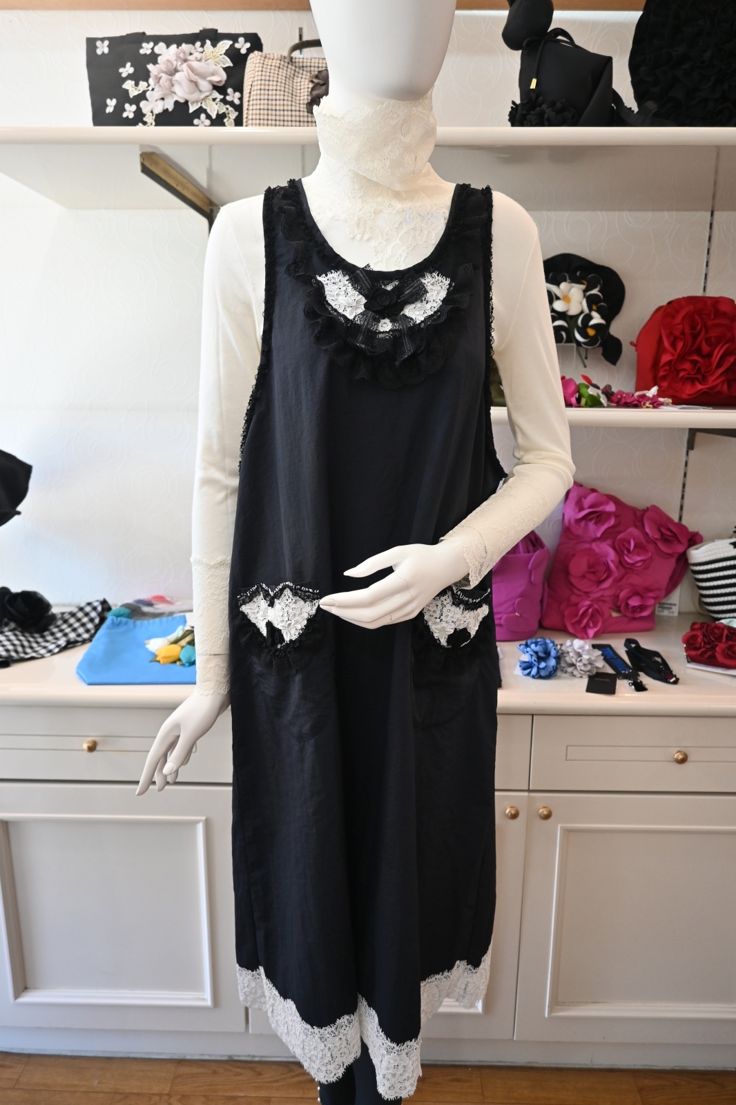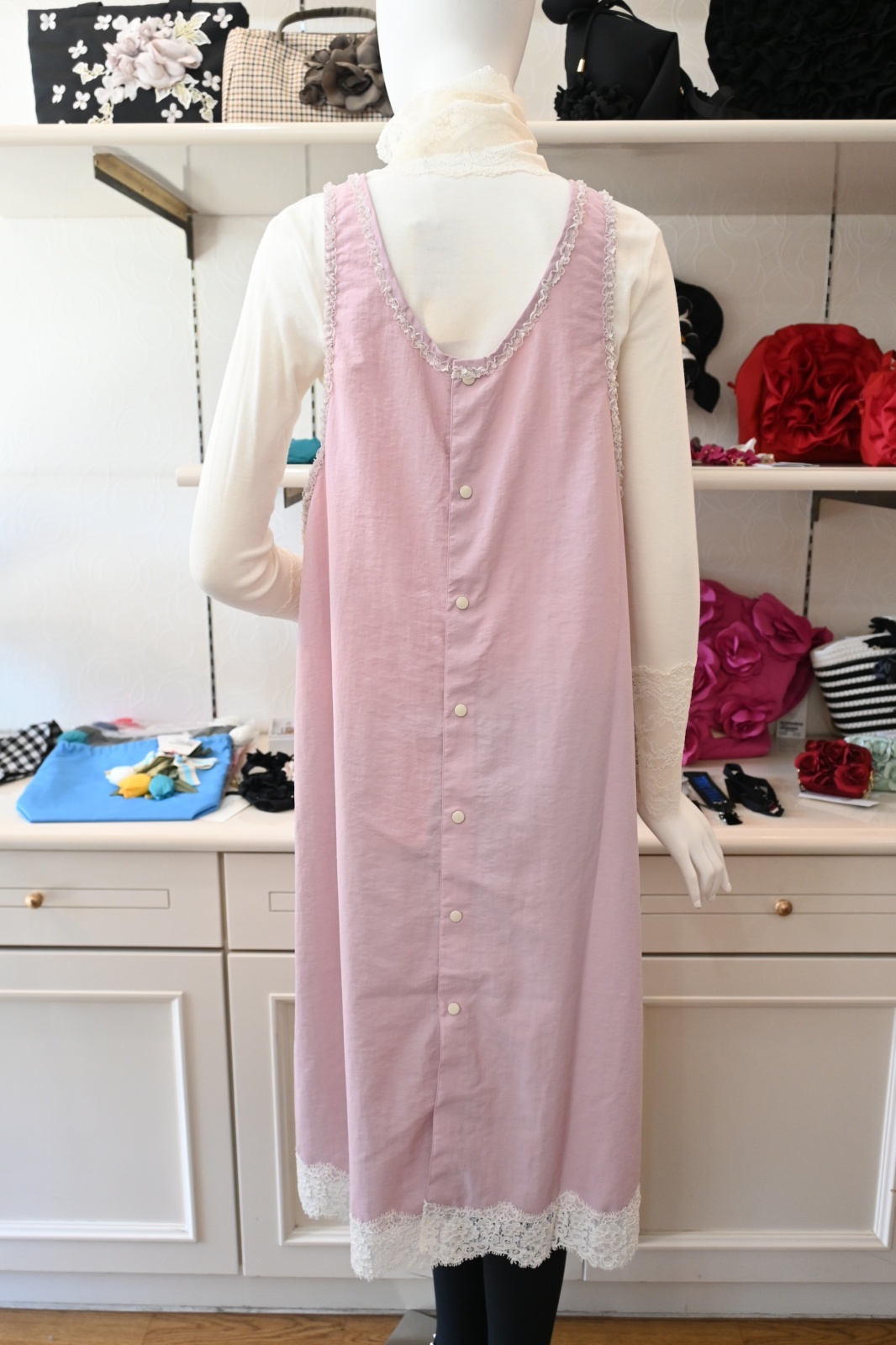| サイズ | フリーサイズ バスト:約112cm(平置き採寸) 総丈:112cm 肩からレース下まで採寸 |