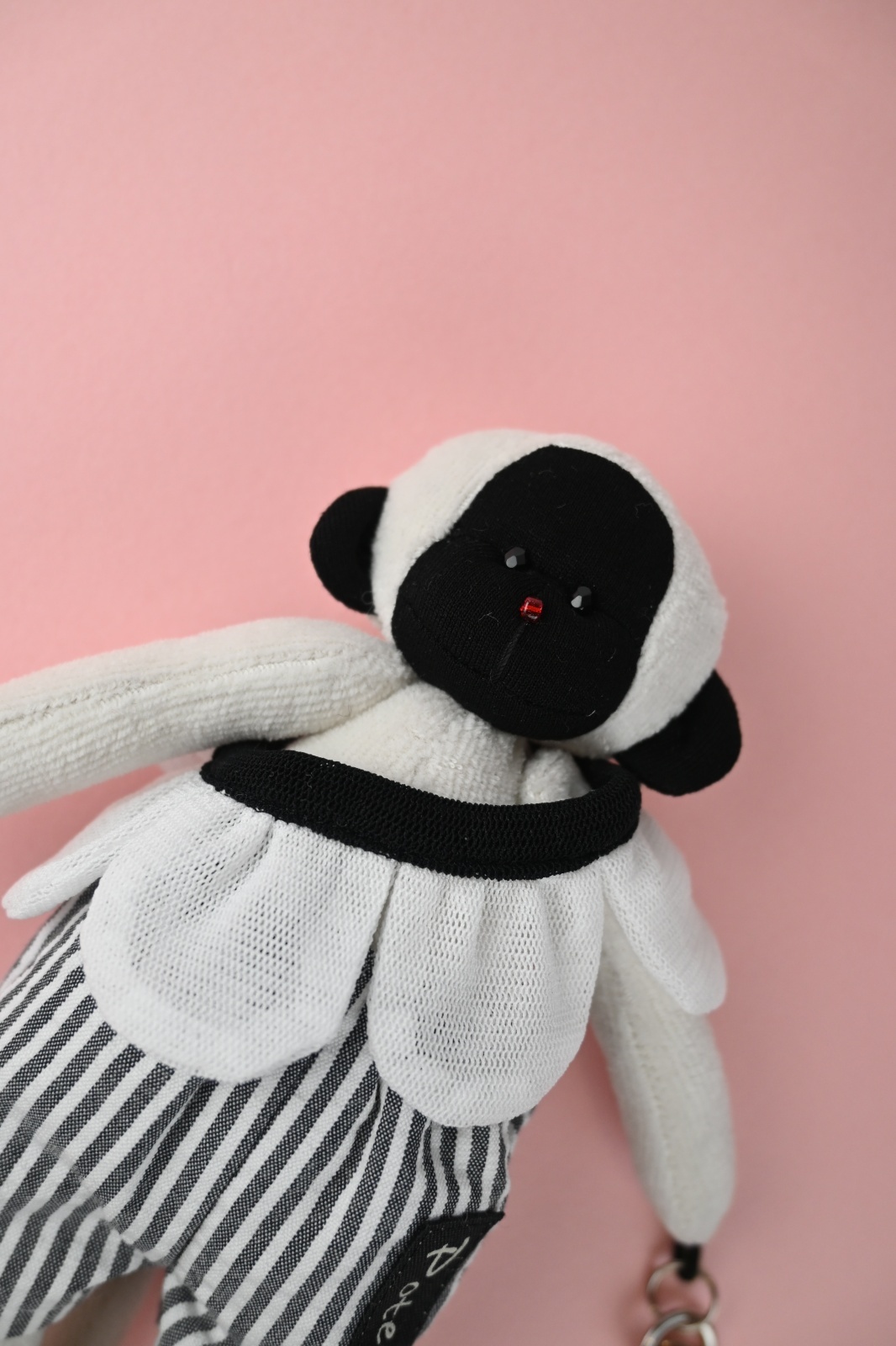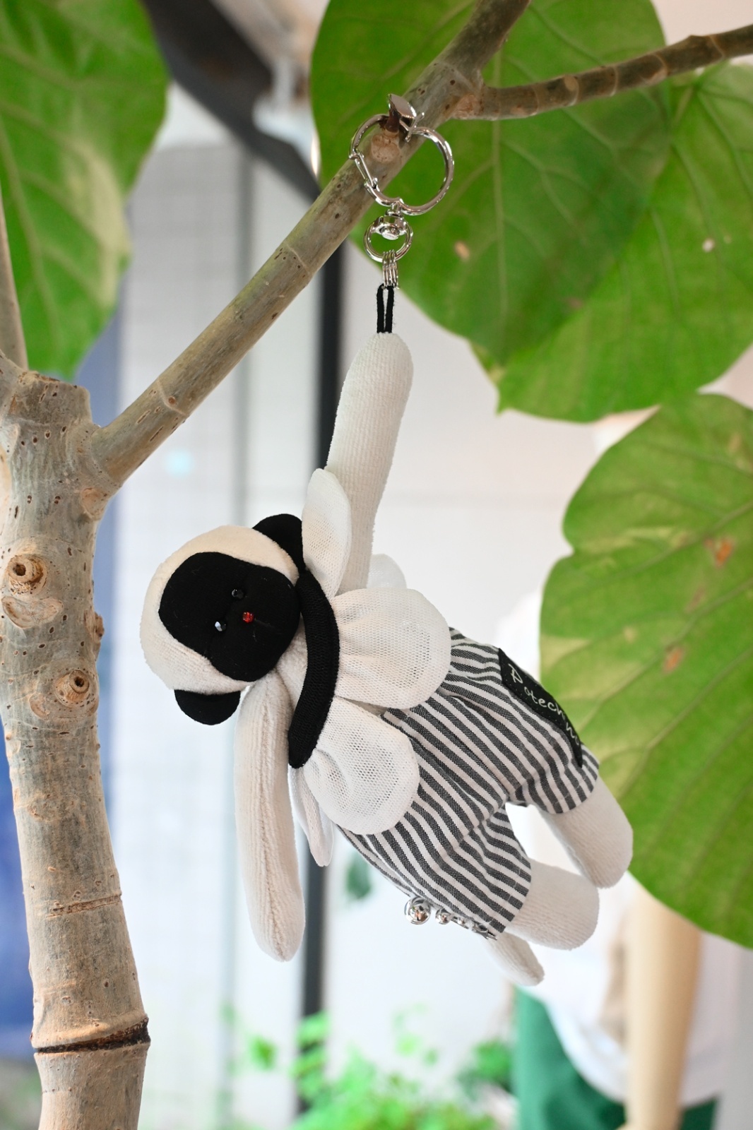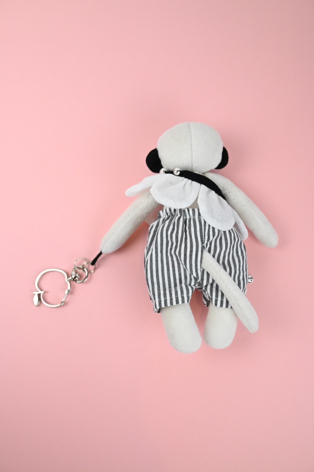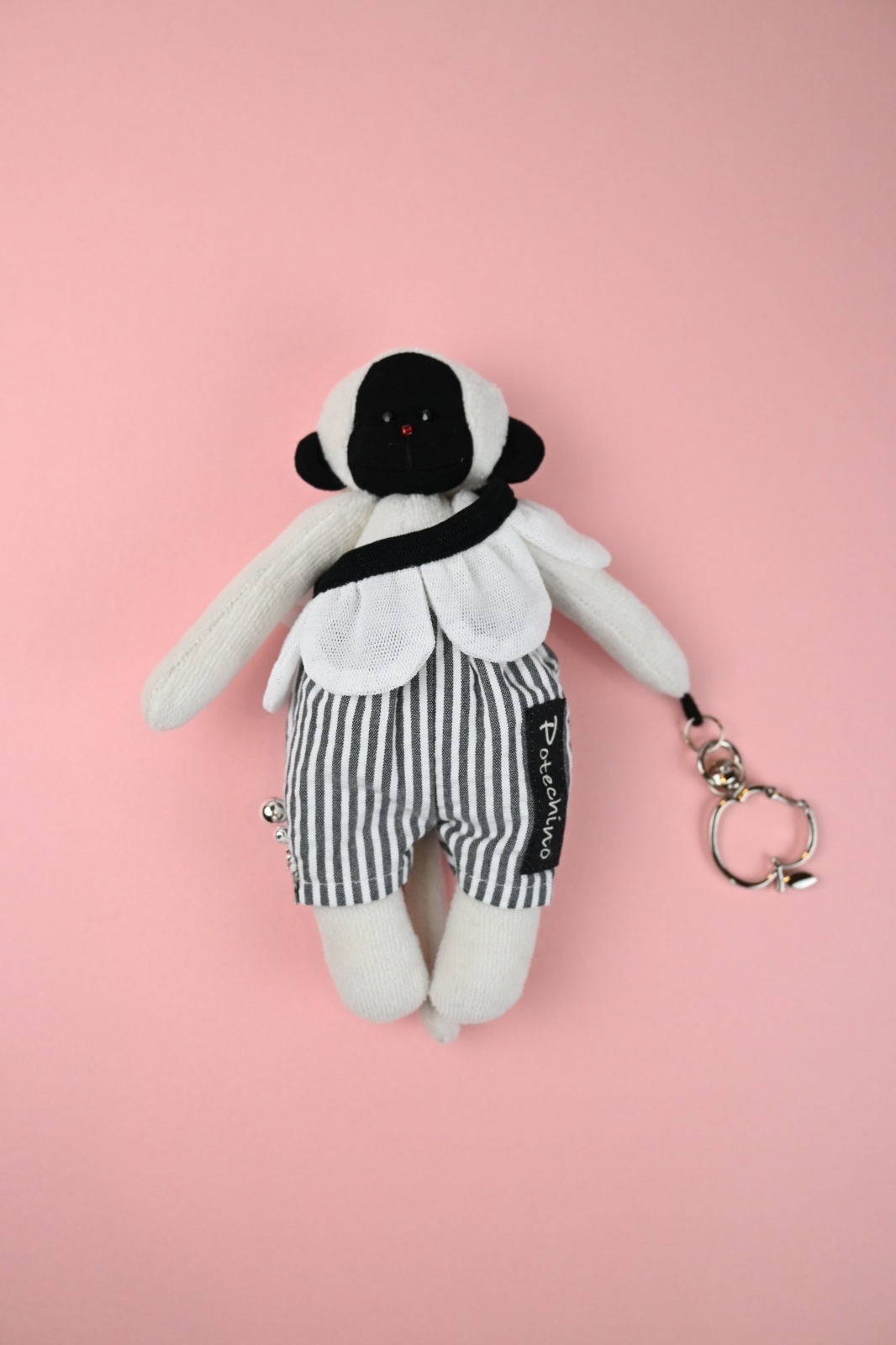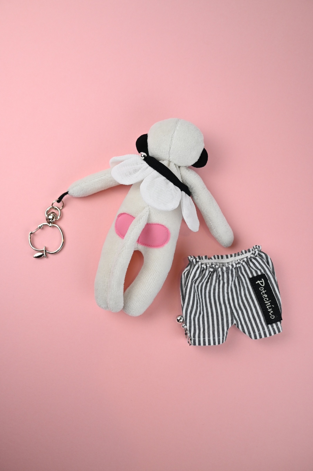 POTECHINO(ポテチーノ)ベロア生地で手触りの良いチャームキーホルダー。すべて脱ぎ着でき細部までこだわって作りました。キーホルダーの金具部分がりんごの形に。